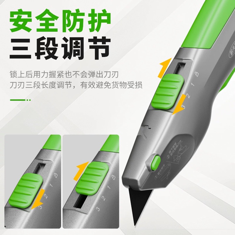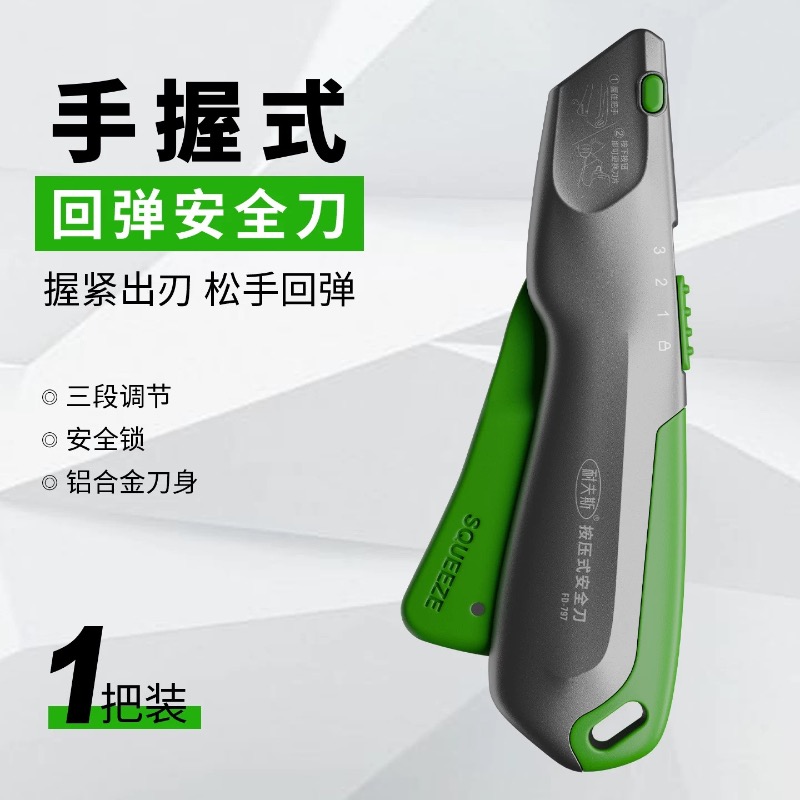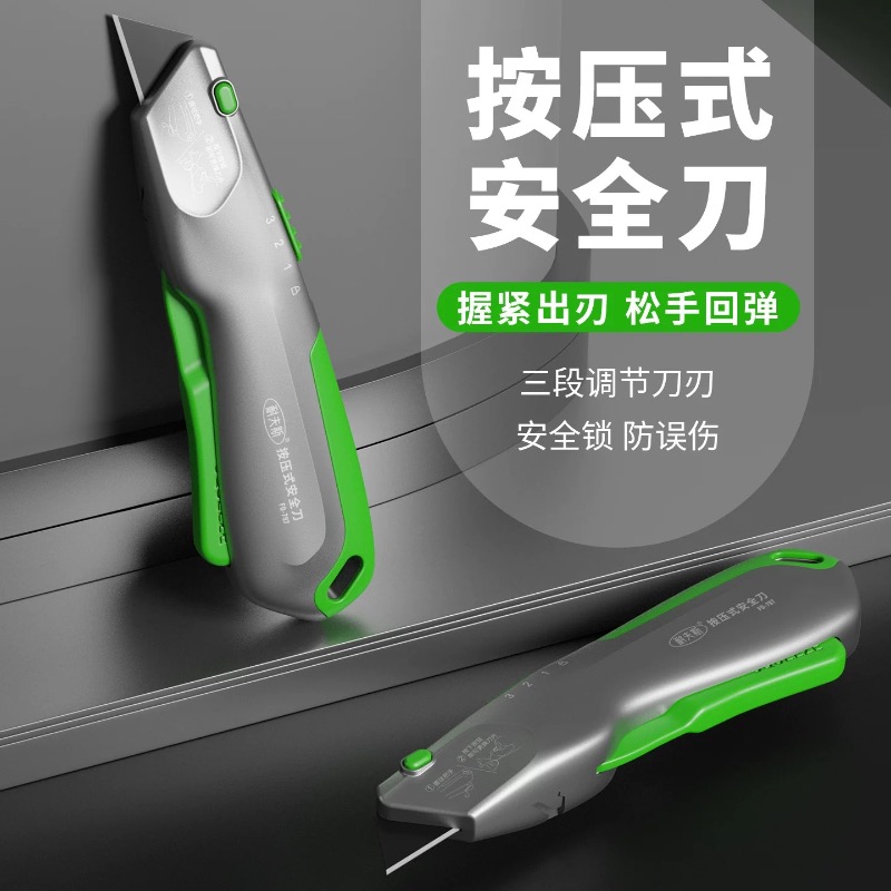 啄木鸟按压式回弹安全刀手握式重型铝合金梯形刀架裁纸开箱刀家用