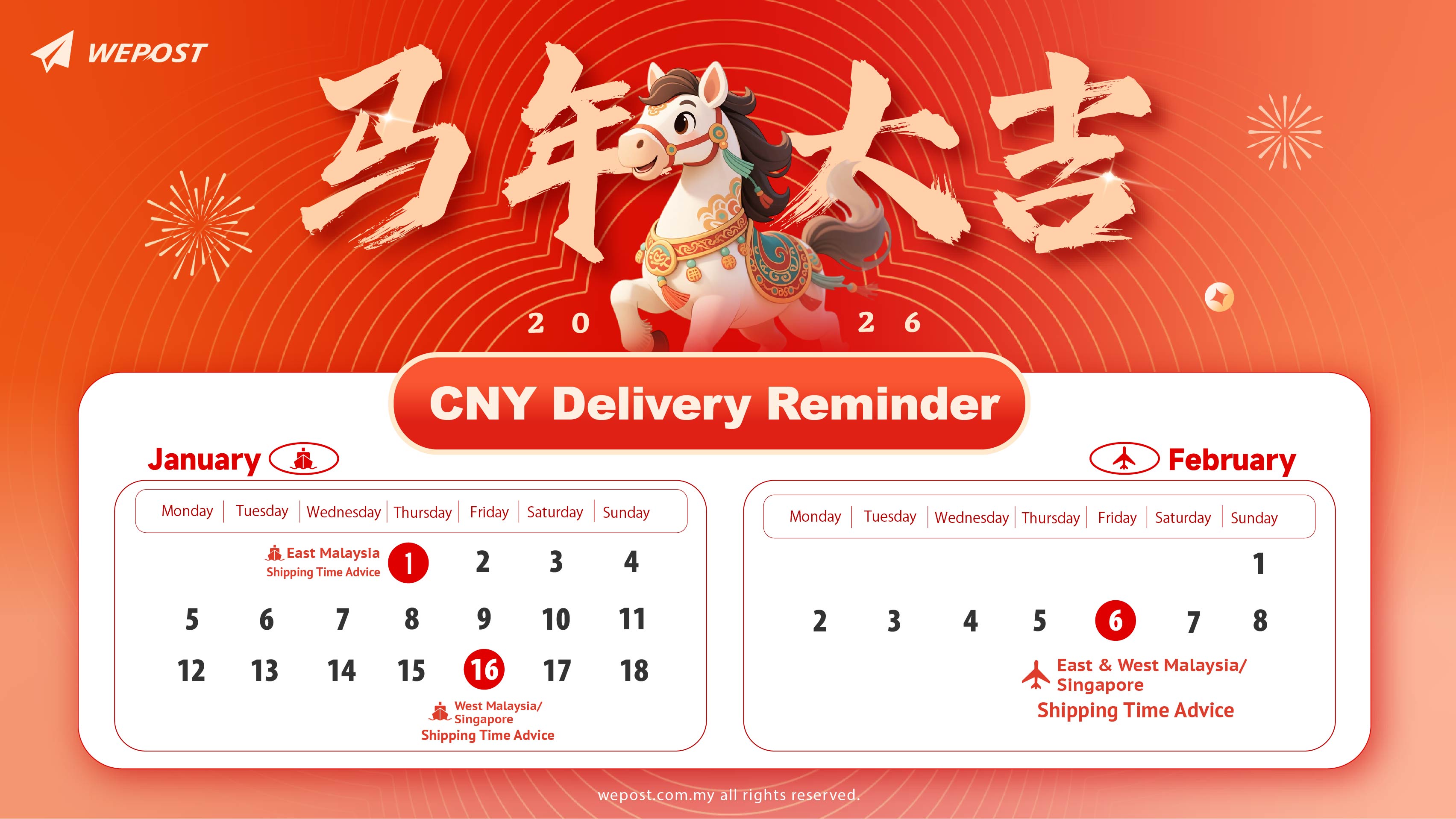 To help you plan your shipment schedule, we have prepared a recommended dispatch timeline for orders that wish to be delivered before Chinese New Year, for your reference.