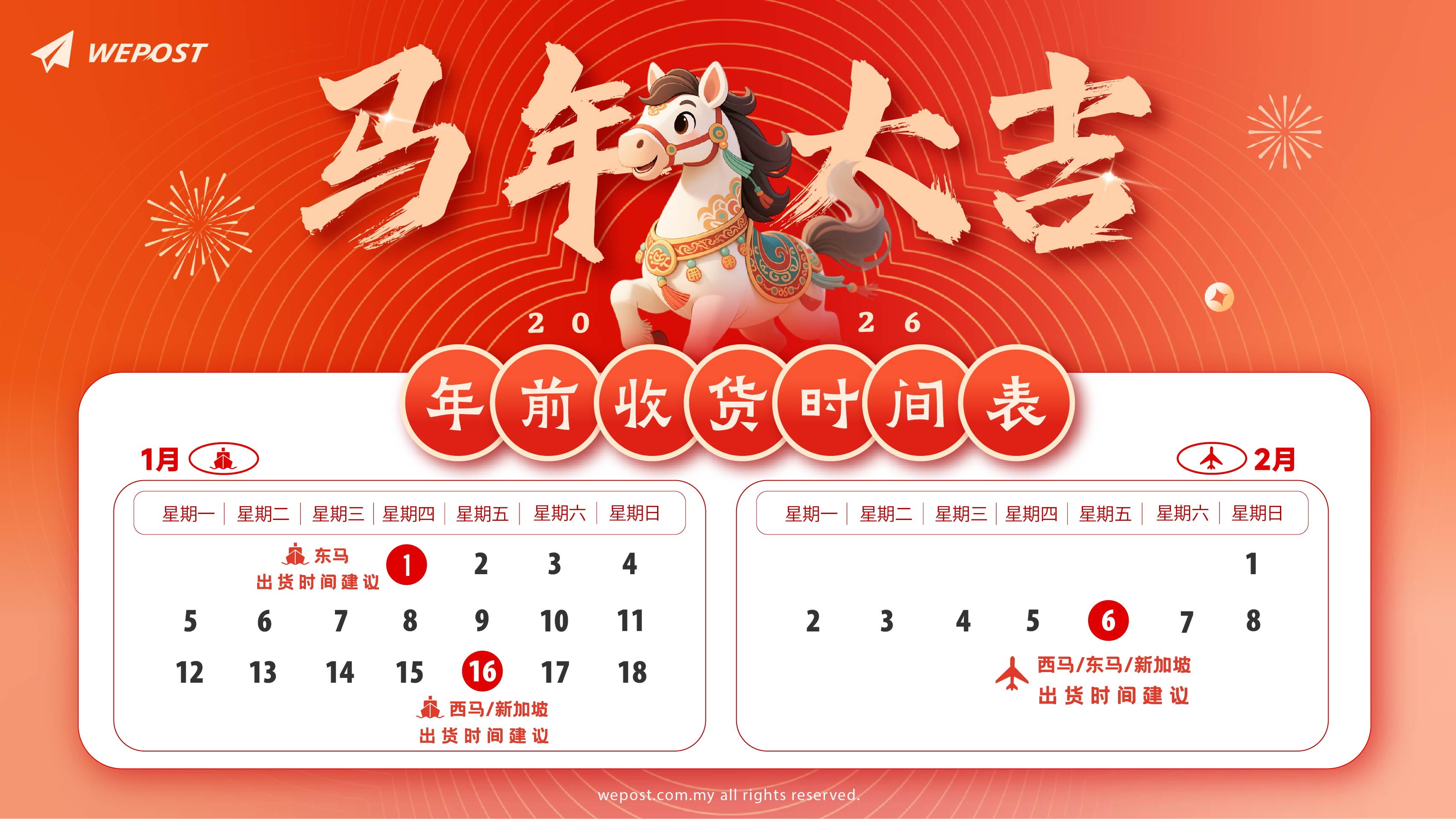 超过建议日期出货的运单,可能将于农历新年期间或年后送达,请提前规划。