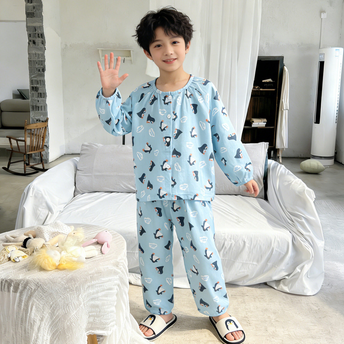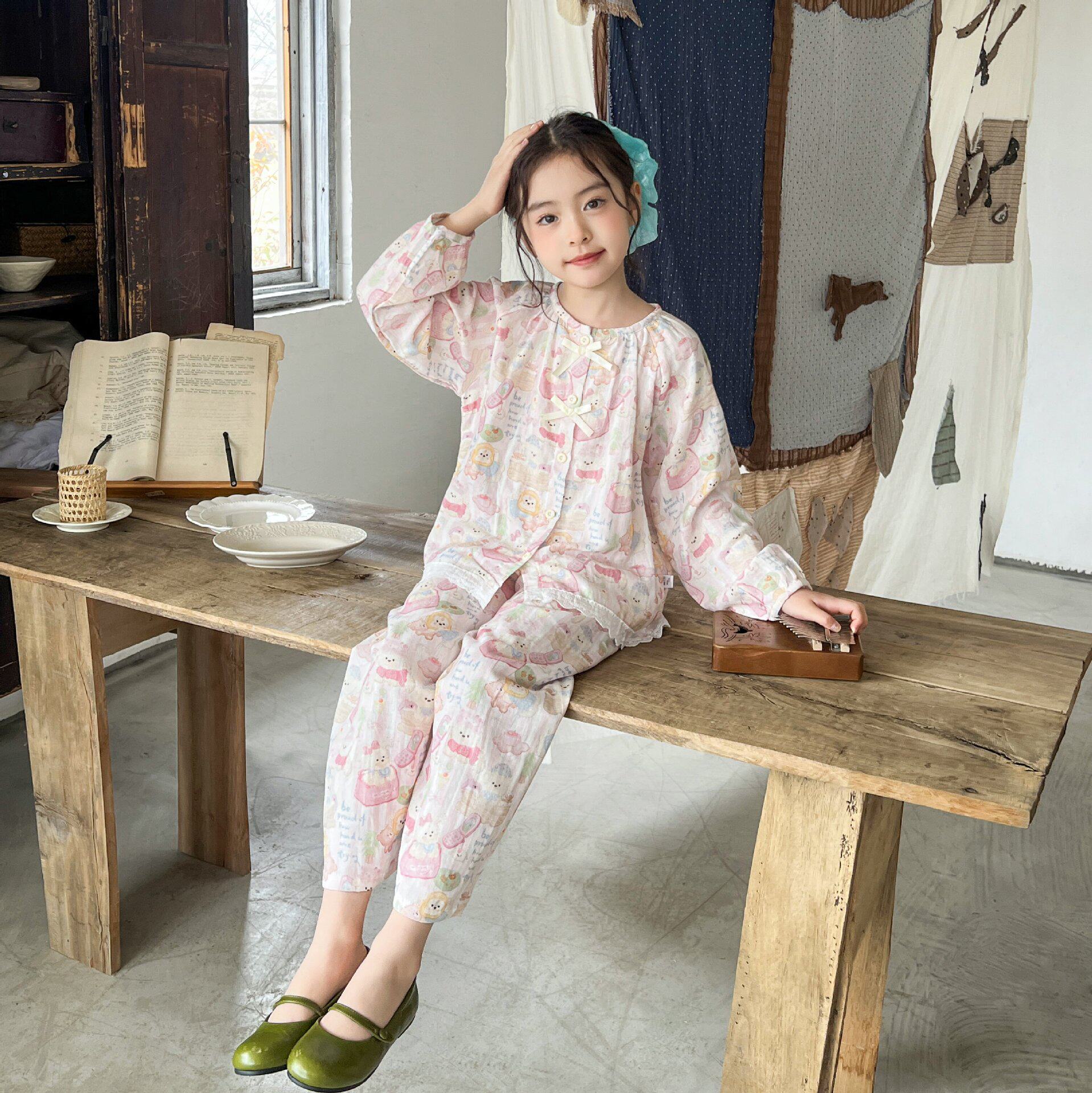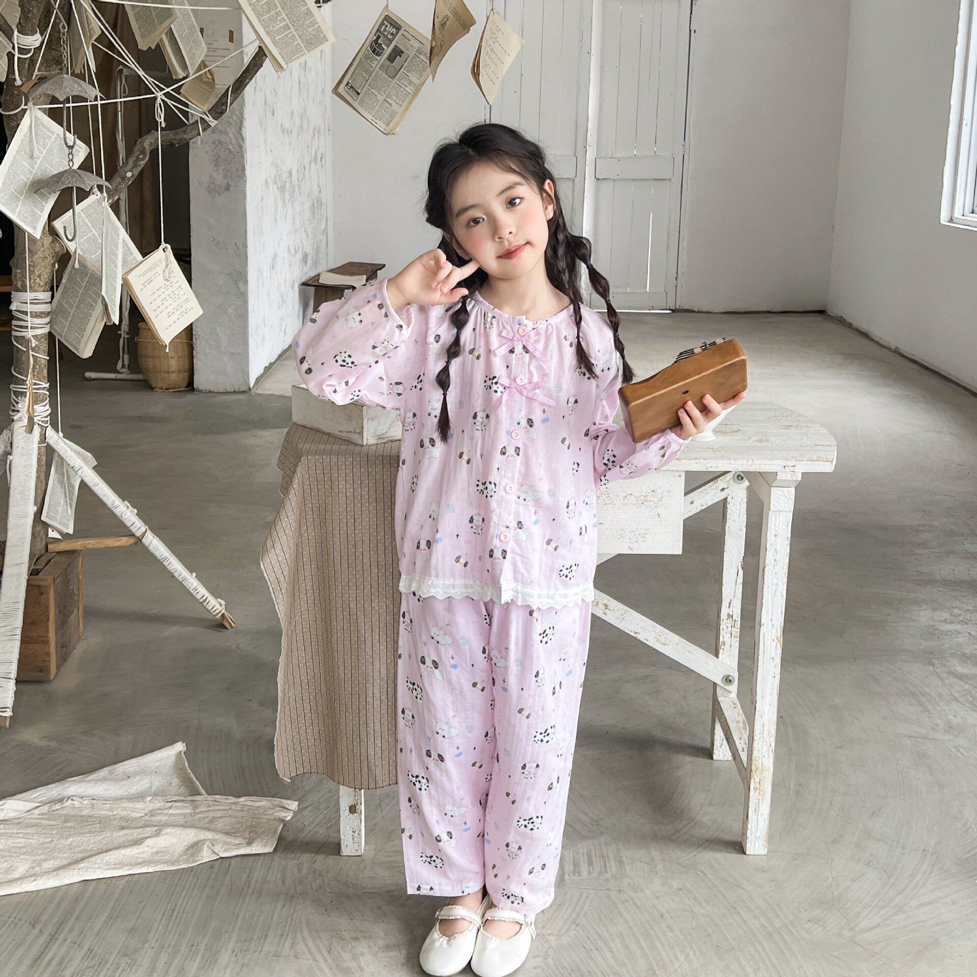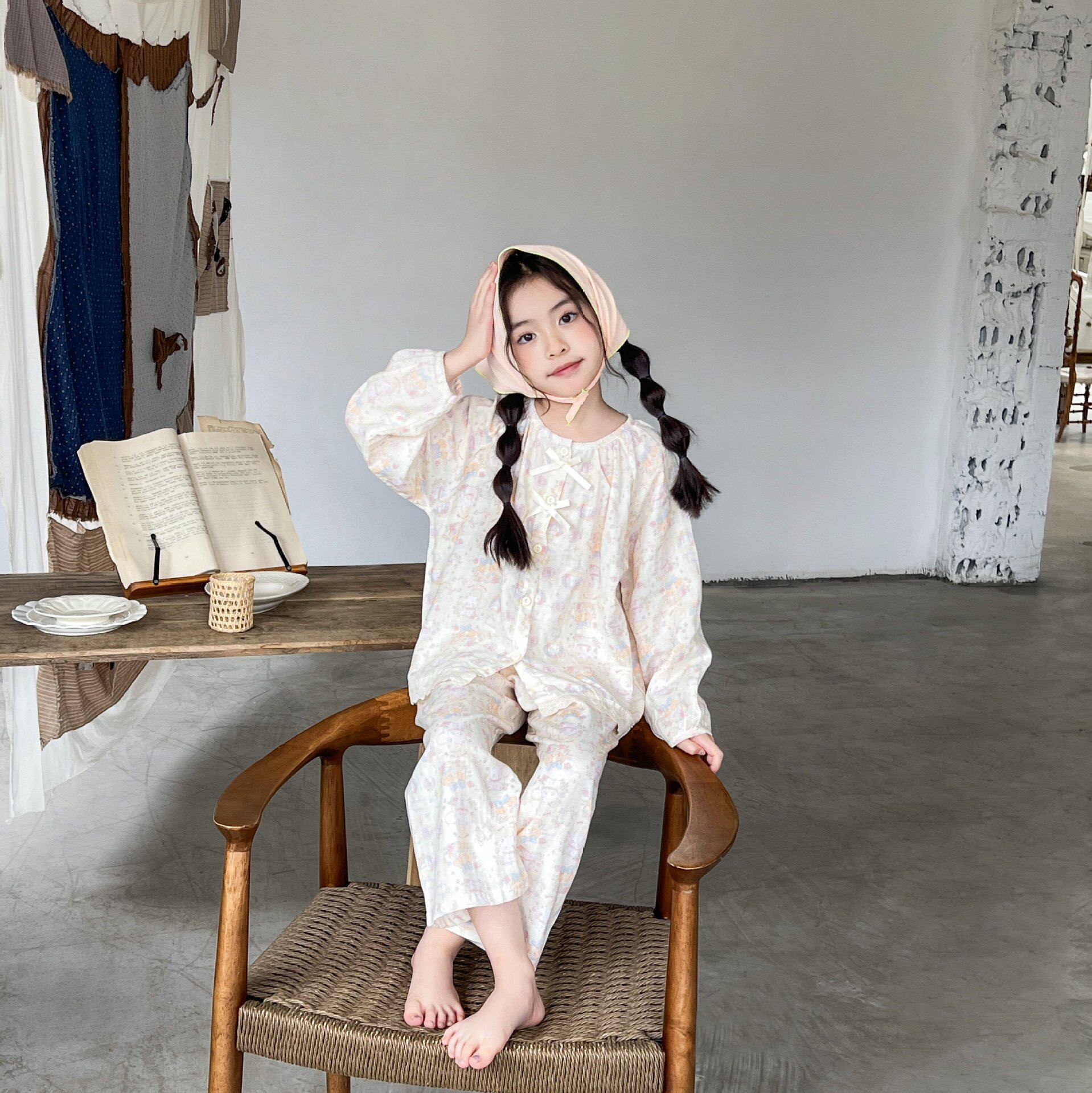 儿童家居服纯棉薄款棉纱布套装女童长袖婴儿男宝宝全棉亲子睡衣夏