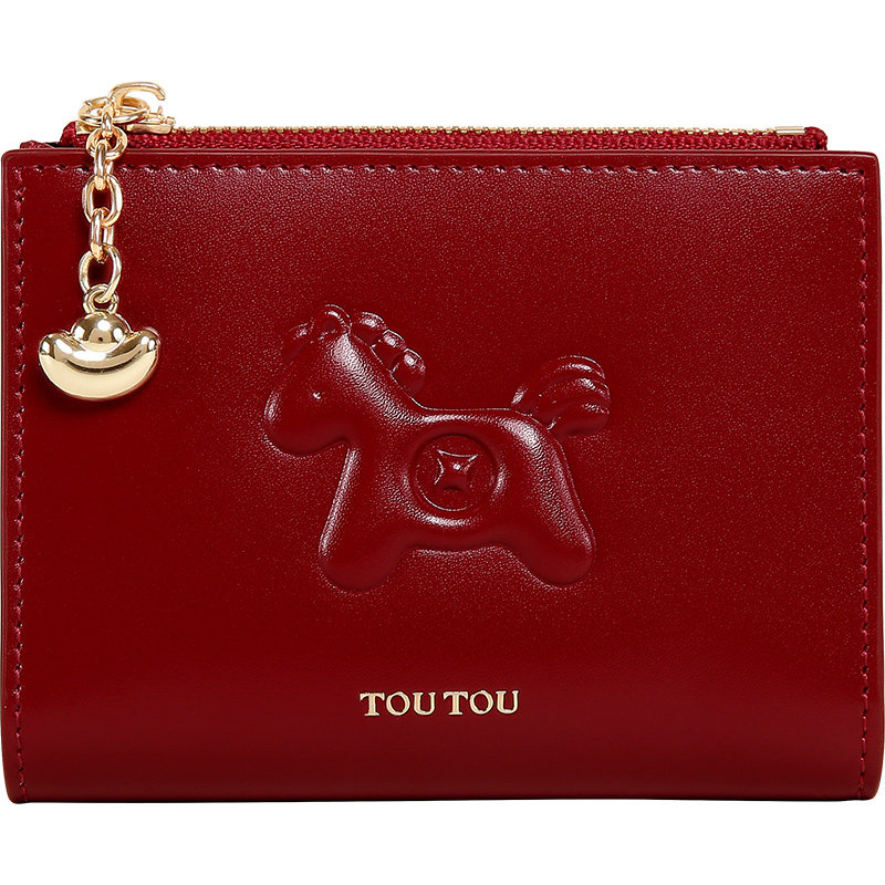 新年本命年礼物TOUTOU马上有钱牛皮钱包红色收纳可爱零钱卡包生日