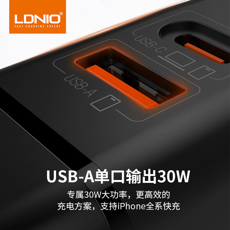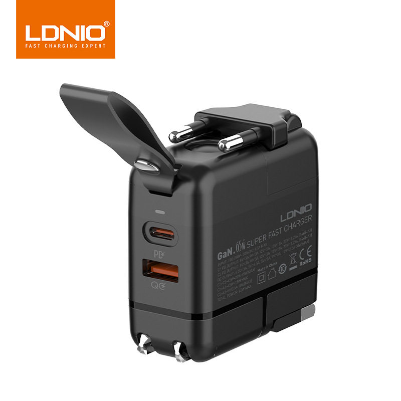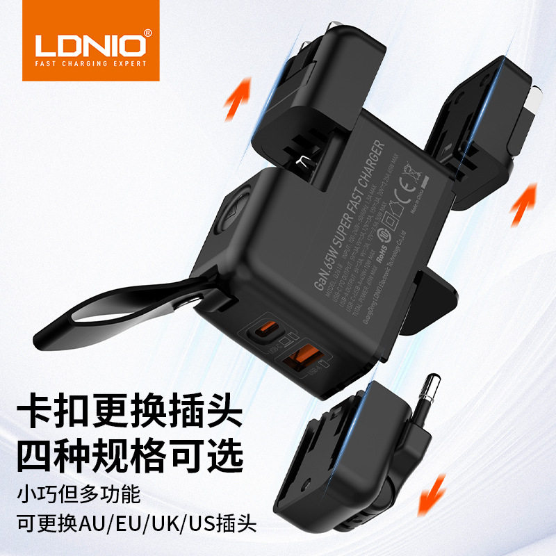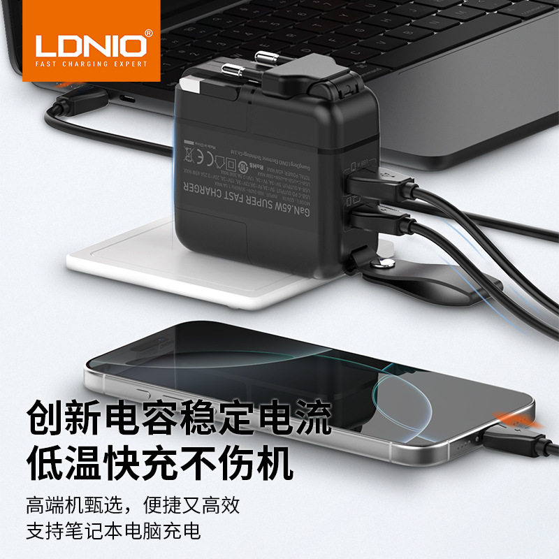 LDNIO力德诺65W氮化镓充电器英欧美标头typec桌面充电器头USB旅行多口PD快充适用笔记本电脑手机平板旅行套