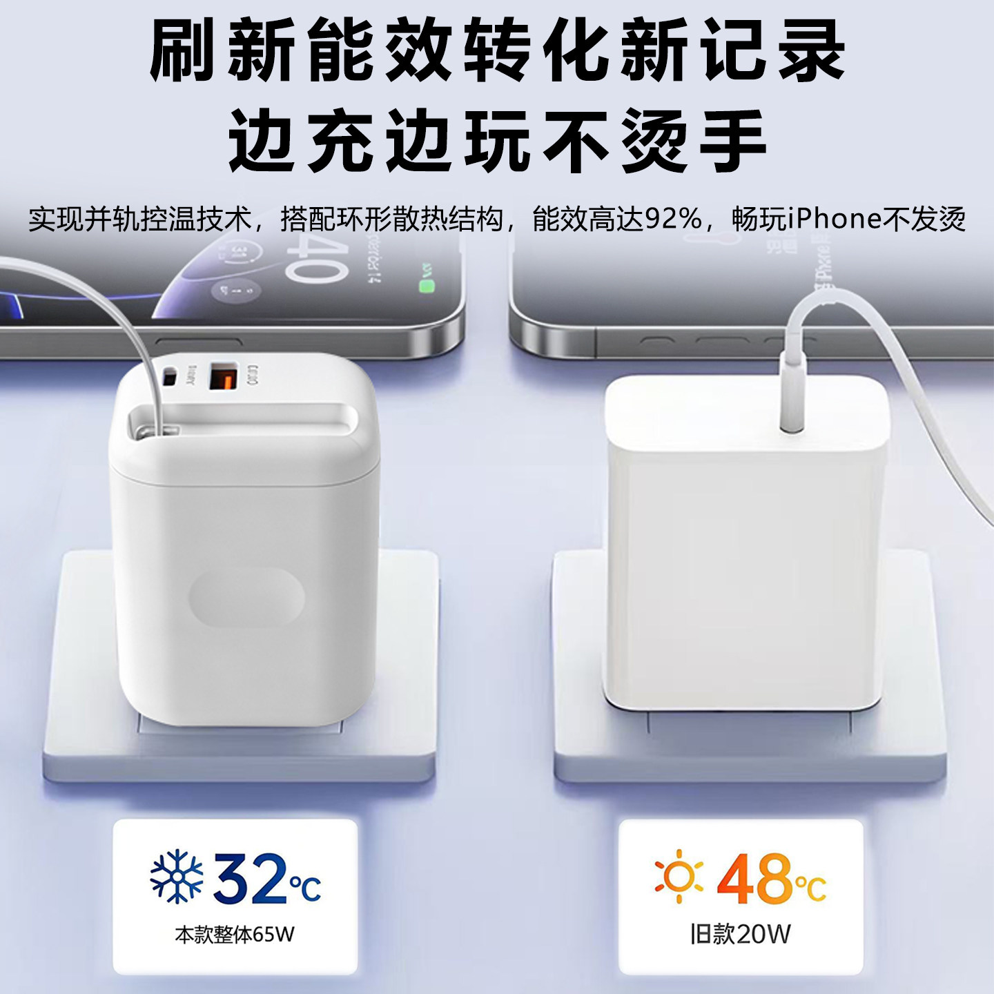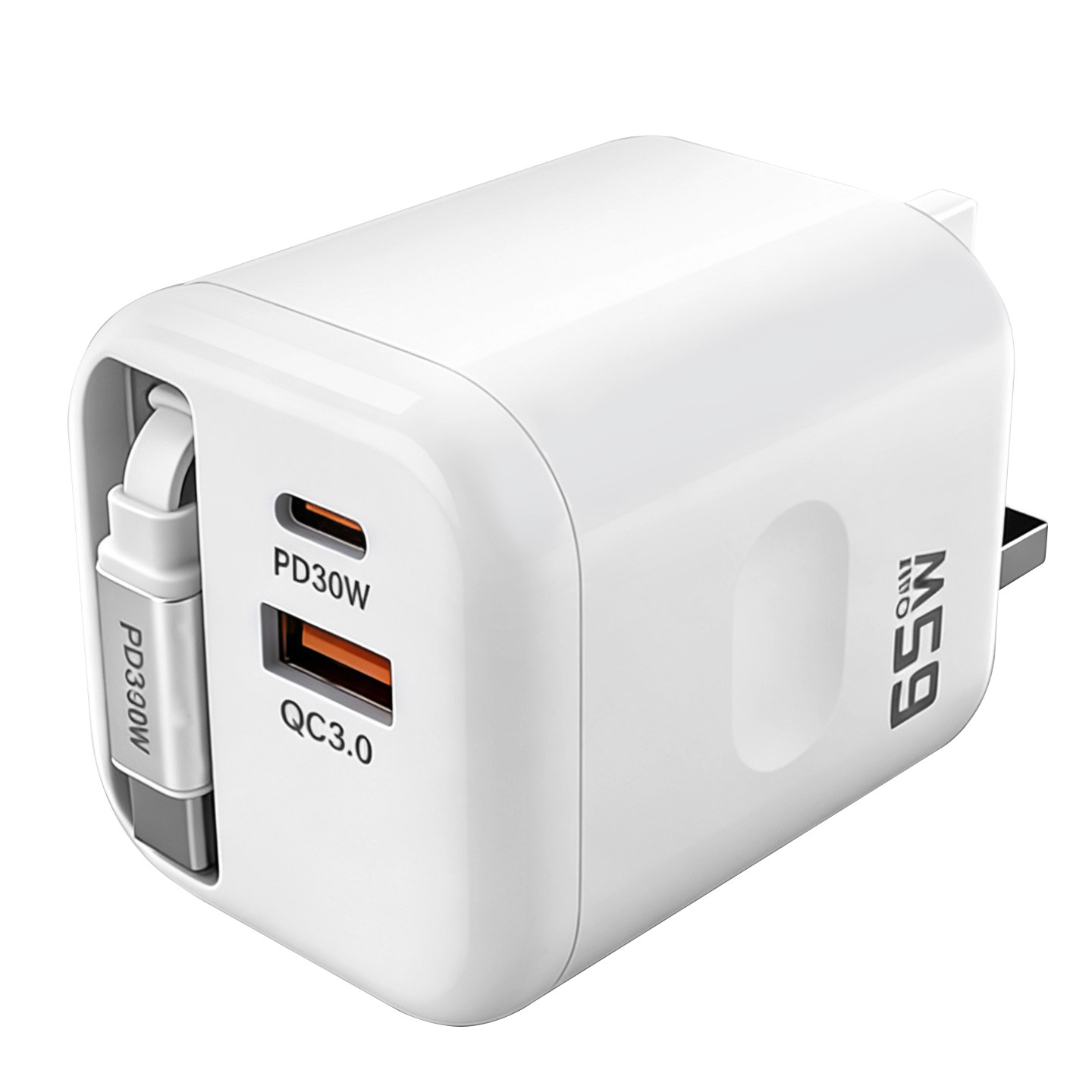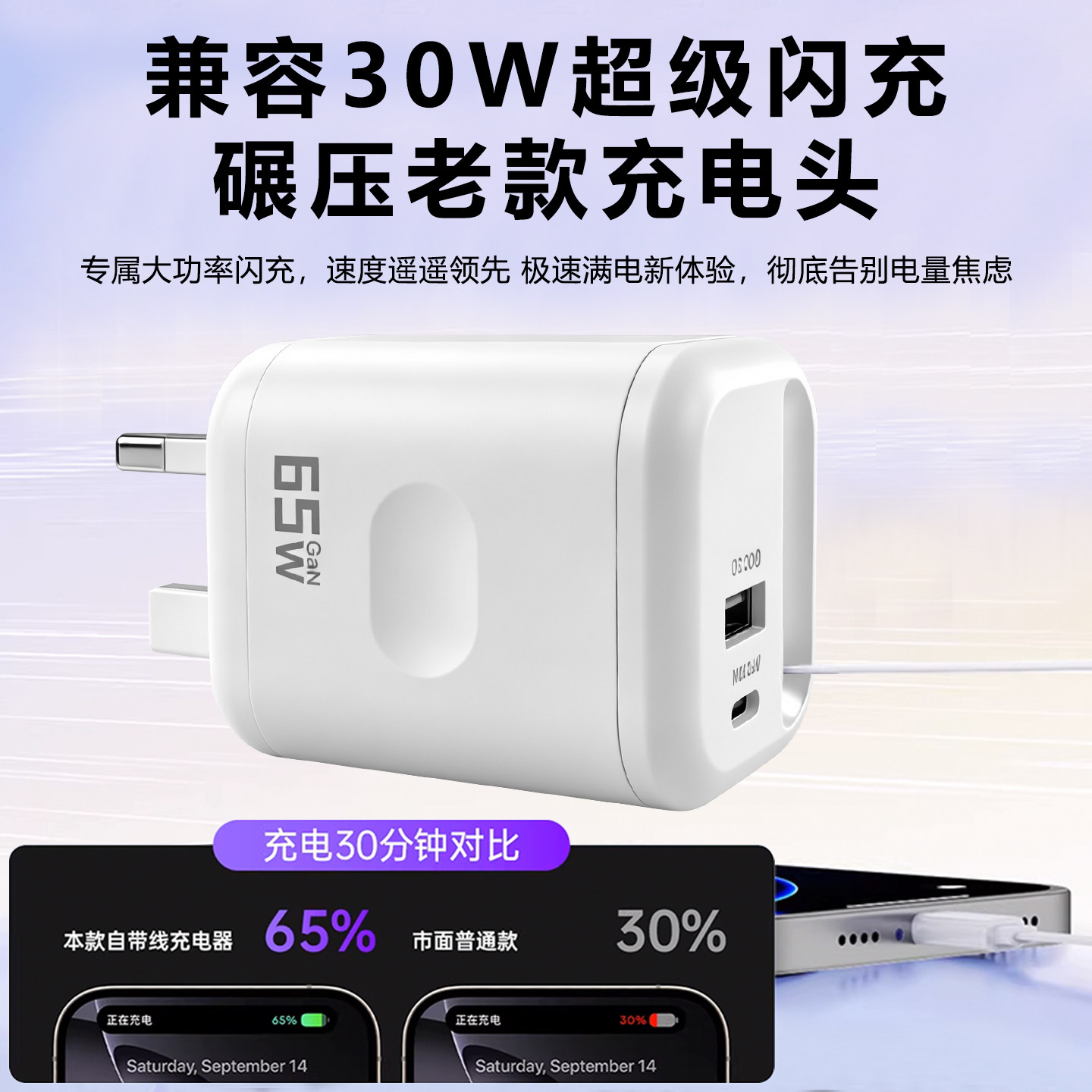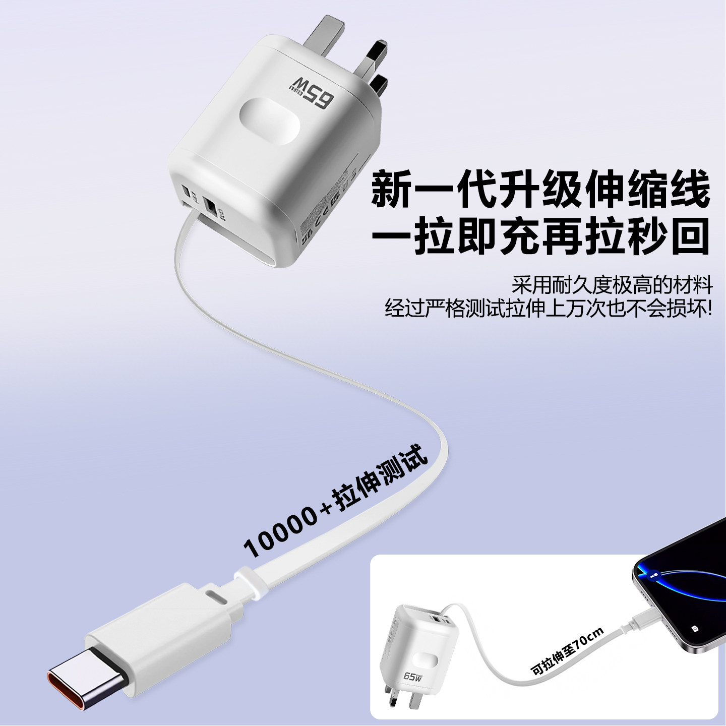 英规充电头65W自带伸缩线充电器GaN一拖三USB-C30W闪充快充头适用于iPhone小米华为苹果17Promax充电头便携
