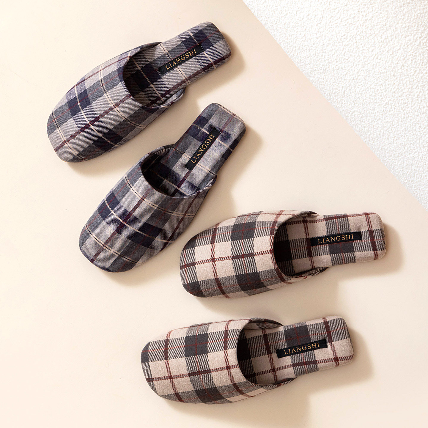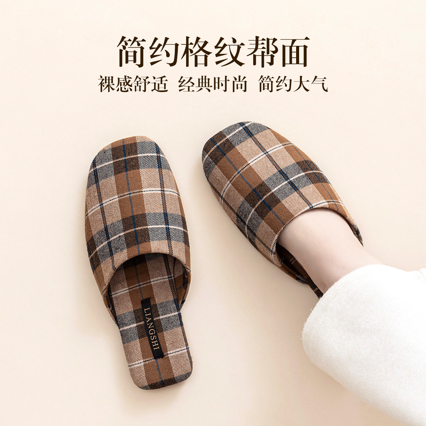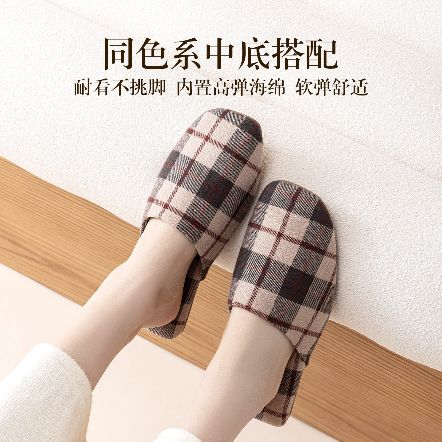 韩泰达格子拖鞋春秋2025薄款韩系布艺拖鞋居家室内防滑轻奢地板拖