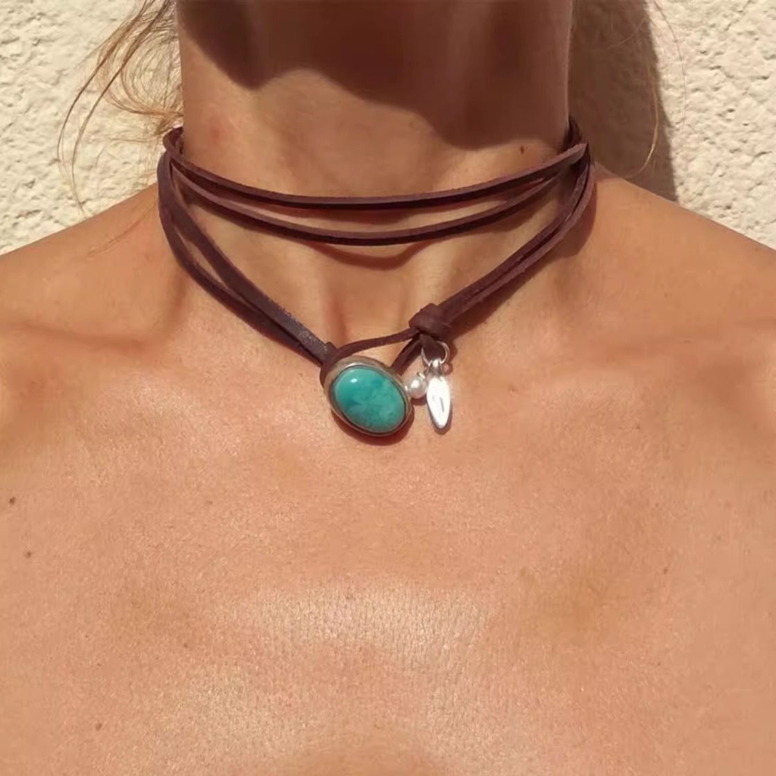BKP曼谷公园「湖水蓝」波西米亚松石项链复古vintage多层choker