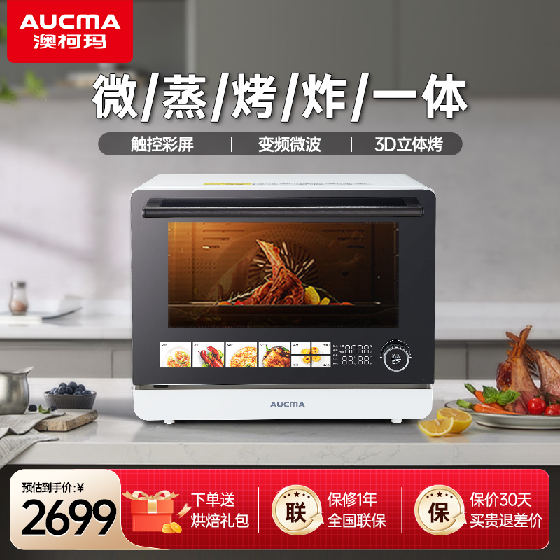 澳柯玛蒸烤箱家用厨房微蒸烤炸一体机四合一微波炉水波炉台式