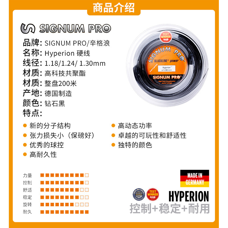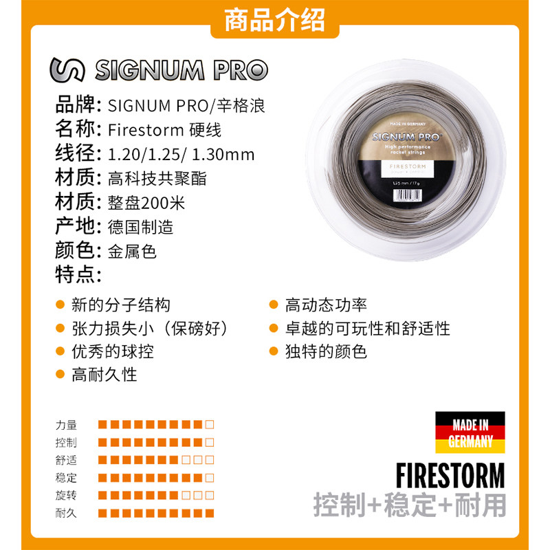 Signum辛格浪网球线Firestorm Tornado舒适旋转弹力散剪聚酯硬线