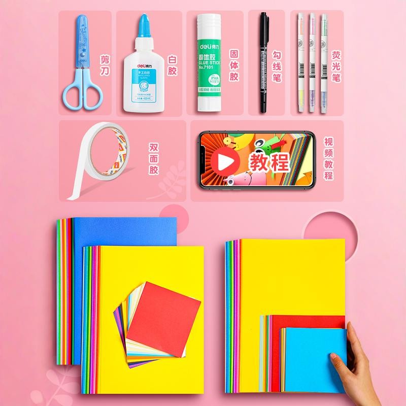 得力a4彩纸软卡纸小学生专用彩色手工折纸幼儿园正方形剪纸色彩纸儿童diy创意衍纸工具套装
