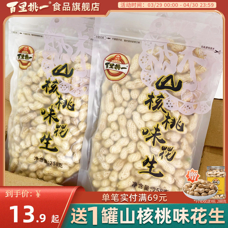 旭东百里挑一花生山核桃蒜香味带壳水煮咸干新年货坚果礼盒零食