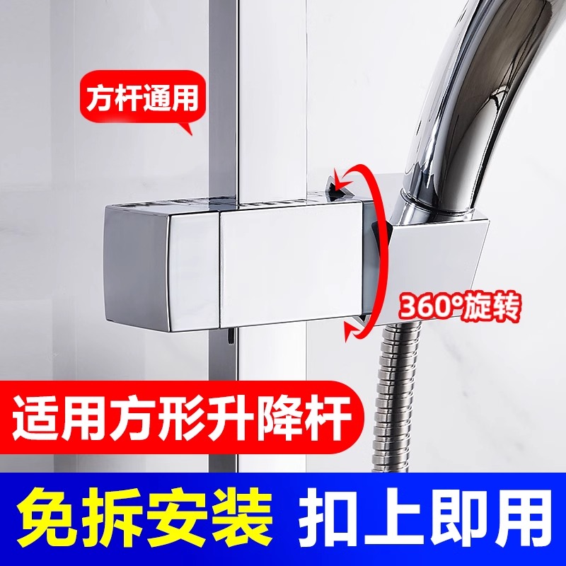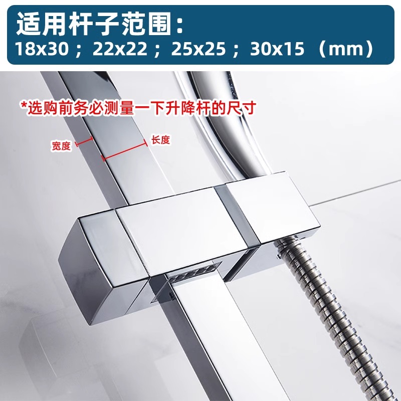 免拆方杆花洒支架升降方管方形底座滑套固定中叉座淋浴器花洒配件