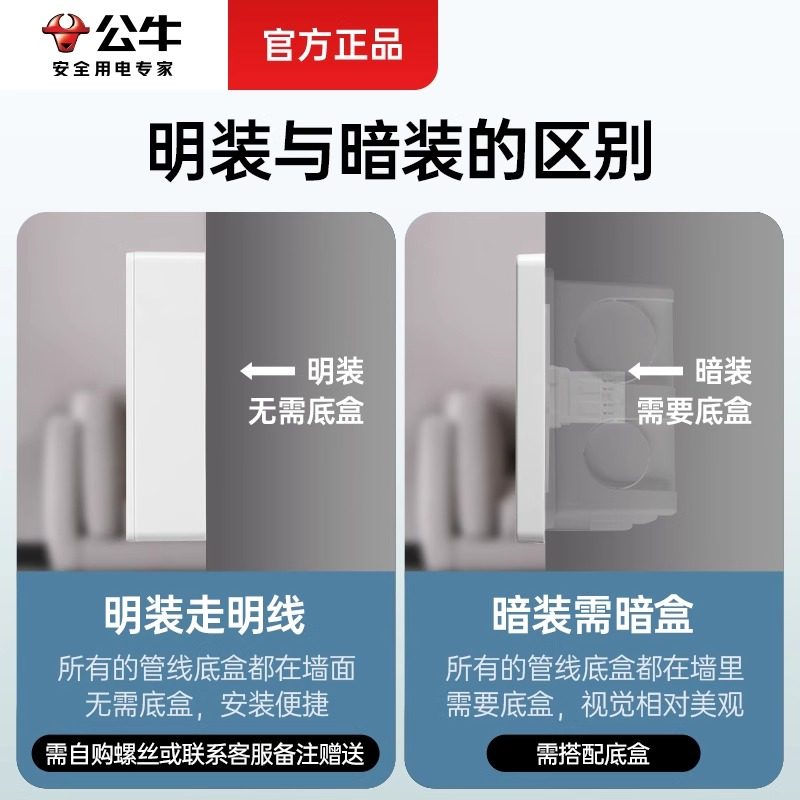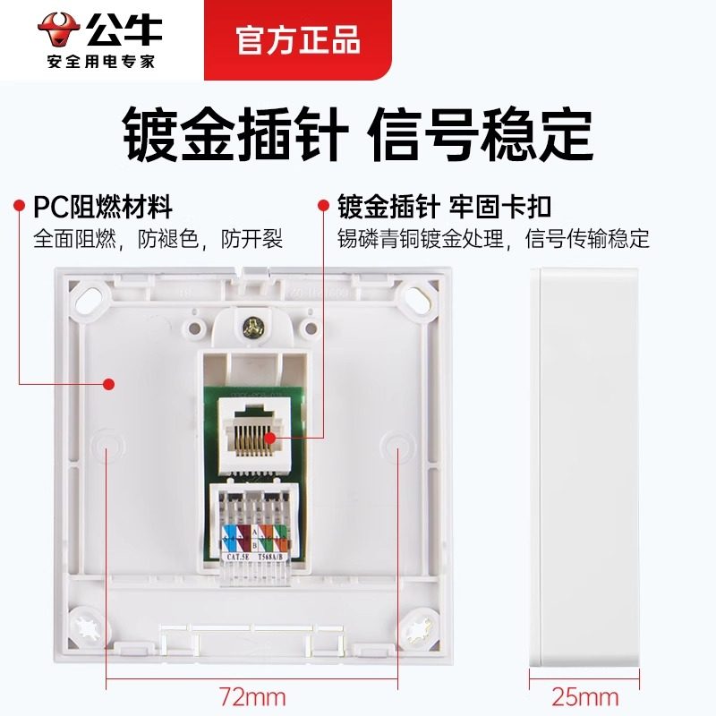 公牛明装电脑插座网插弱电信息插座电话网线网络网口光纤宽带面板
