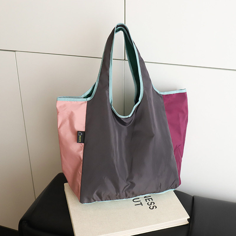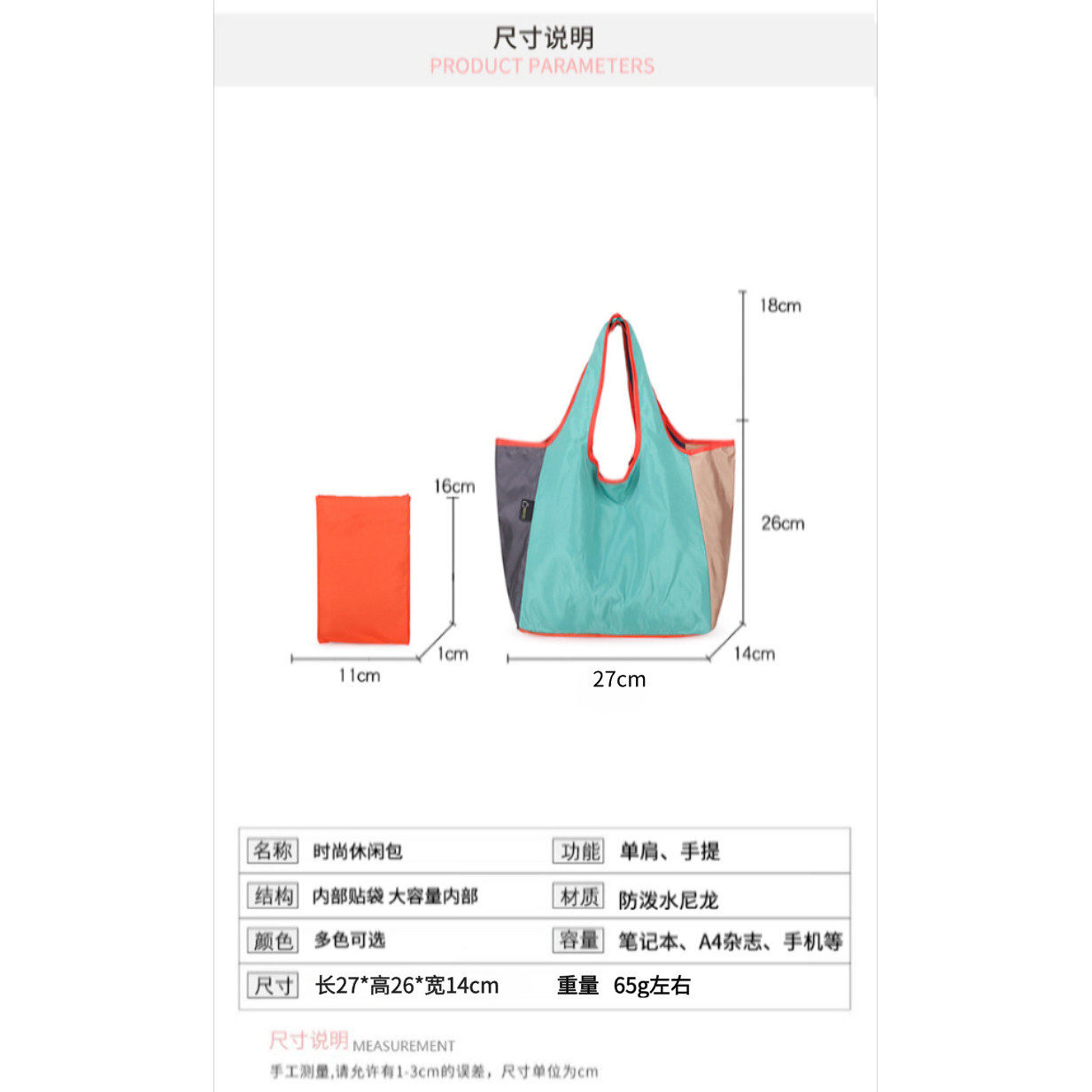 多巴胺折叠托特包超市手提购物袋涤纶大容量布袋子防水环保收纳袋
