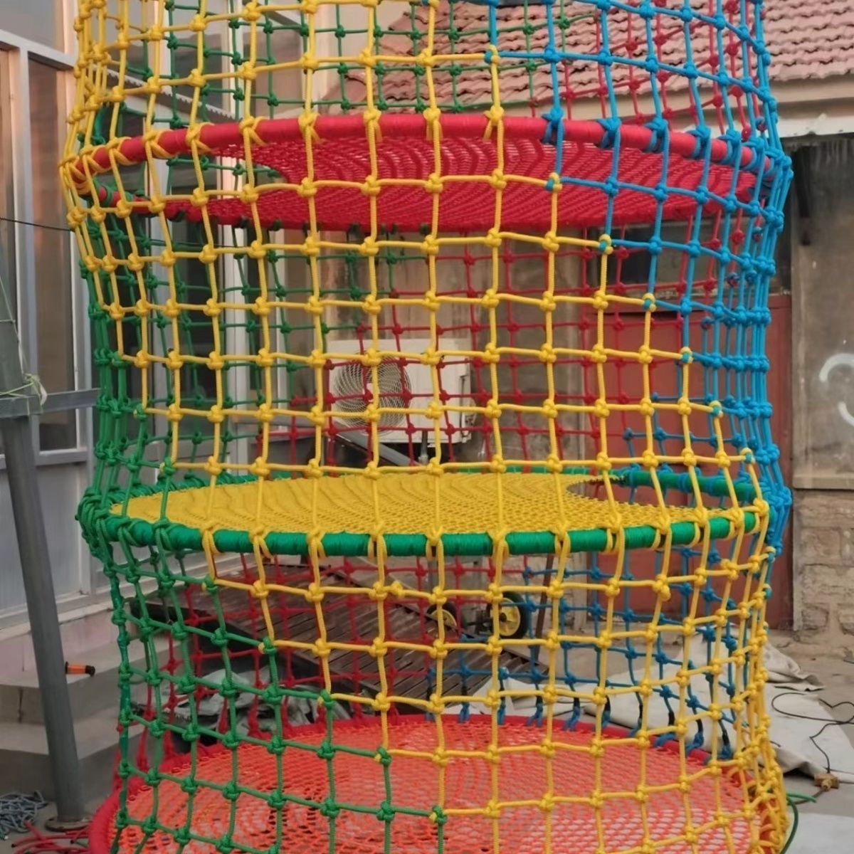 户外儿童攀爬彩色安全网拓展天井尼龙网楼梯幼儿园防坠防护网定做