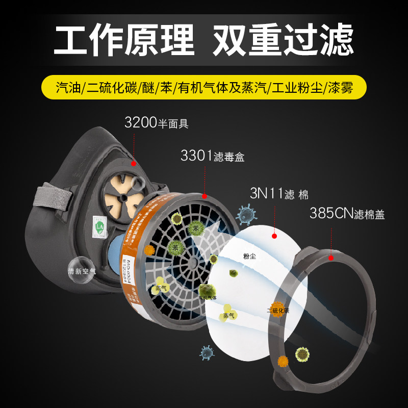 3M3200防毒面具喷漆专用农药化工气体装修实验防护呼气器工业放毒