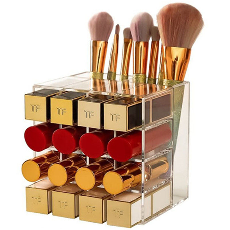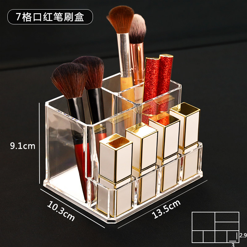 纳装化妆品收纳盒女眉笔化妆刷梳妆台置物架亚克力口红美妆蛋透明