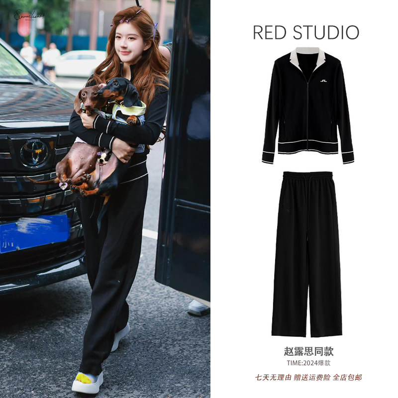 赵露思许妍同款黑色高尔夫棒球服外套上衣+运动长裤休闲套装女秋