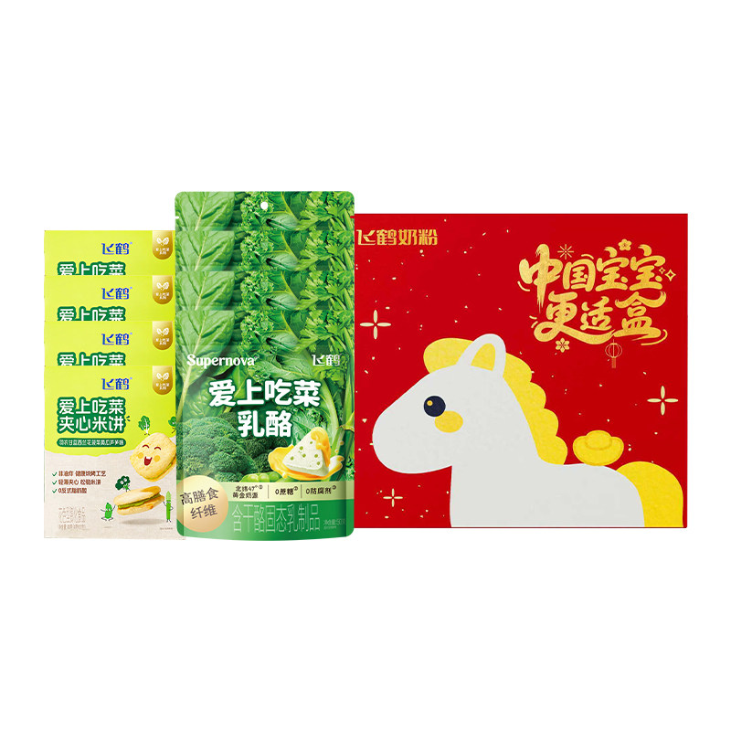 【马年礼盒】飞鹤爱上吃菜夹心米饼40g*4盒+爱上吃菜乳酪50g*4包