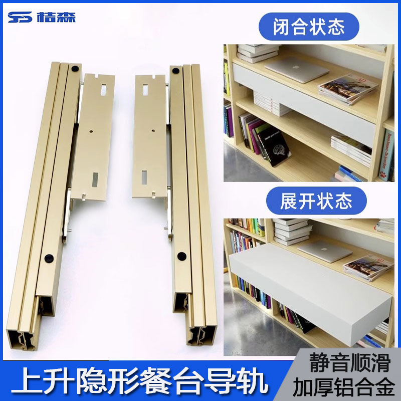 餐台上升隐形导轨延边桌升降折叠书桌滑轨铝合金抽拉式五金配件