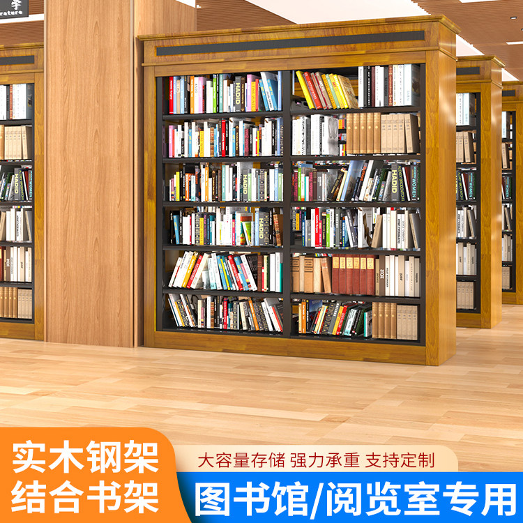 定制图书馆钢木书架学校阅览室西西弗图书馆档案室单双面展示架