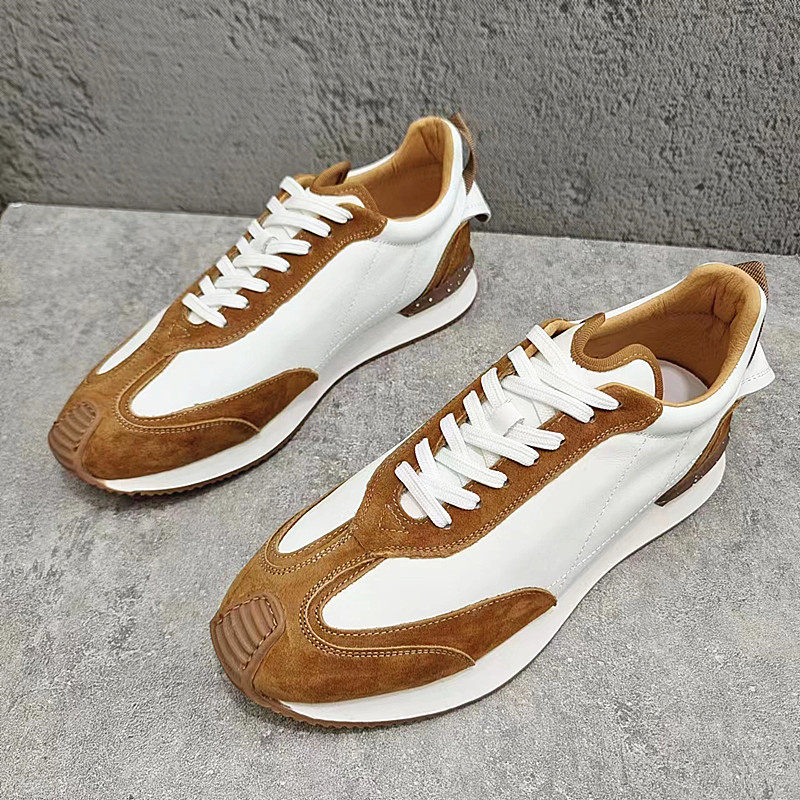枫之时尚春夏系带运动休闲鞋拼色轻便舒适透气牛皮流行男士阿甘鞋