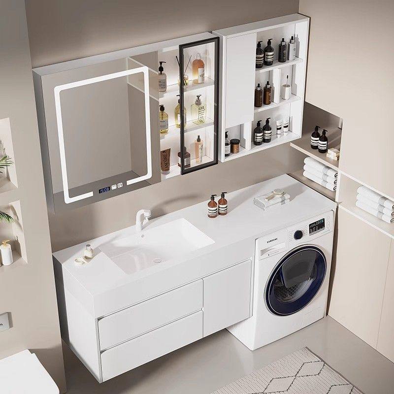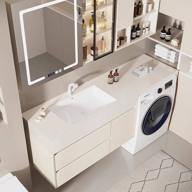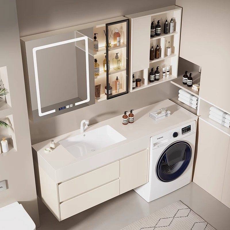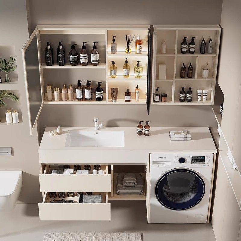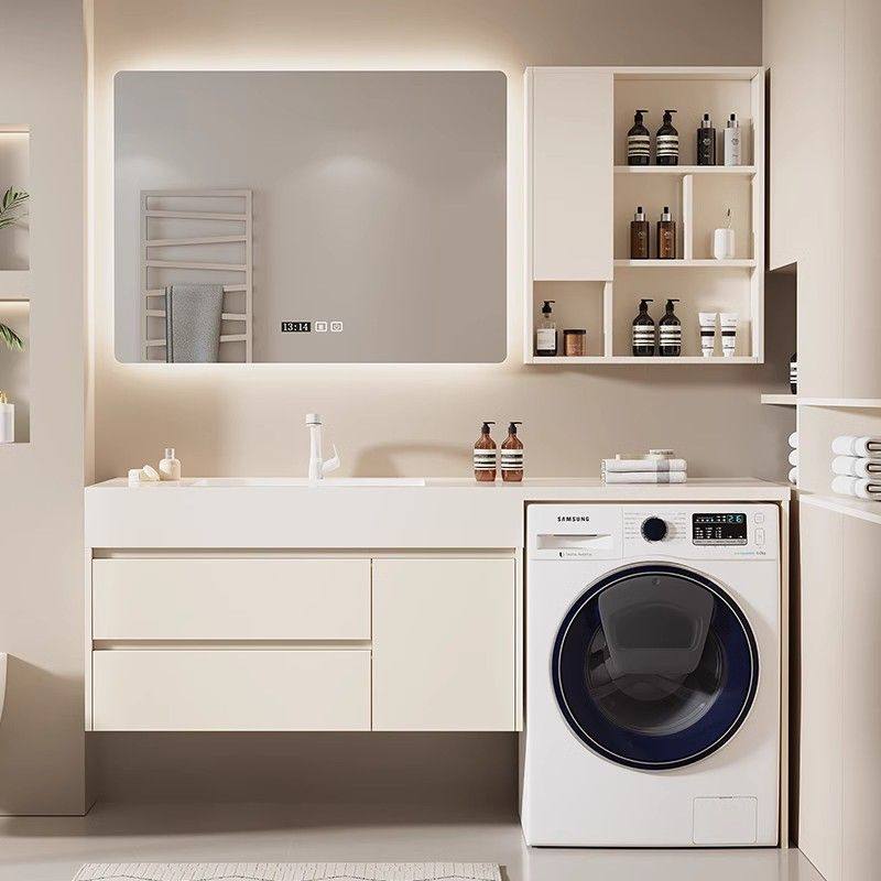莫顿简约岩板浴室柜洗衣机一体柜组合奶油风卫生间洗漱台洗手脸盆