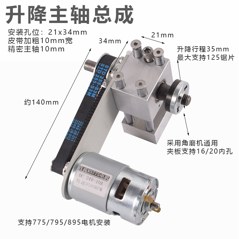台锯主轴精密微型台锯轴承座 DIY木工台锯轴 无动力切割打磨主轴