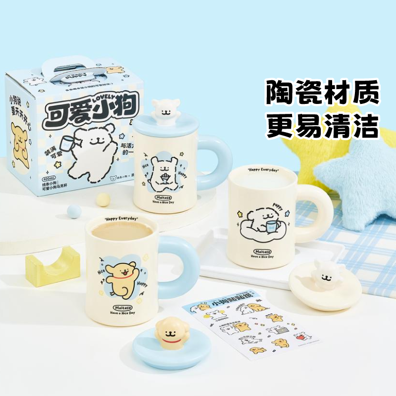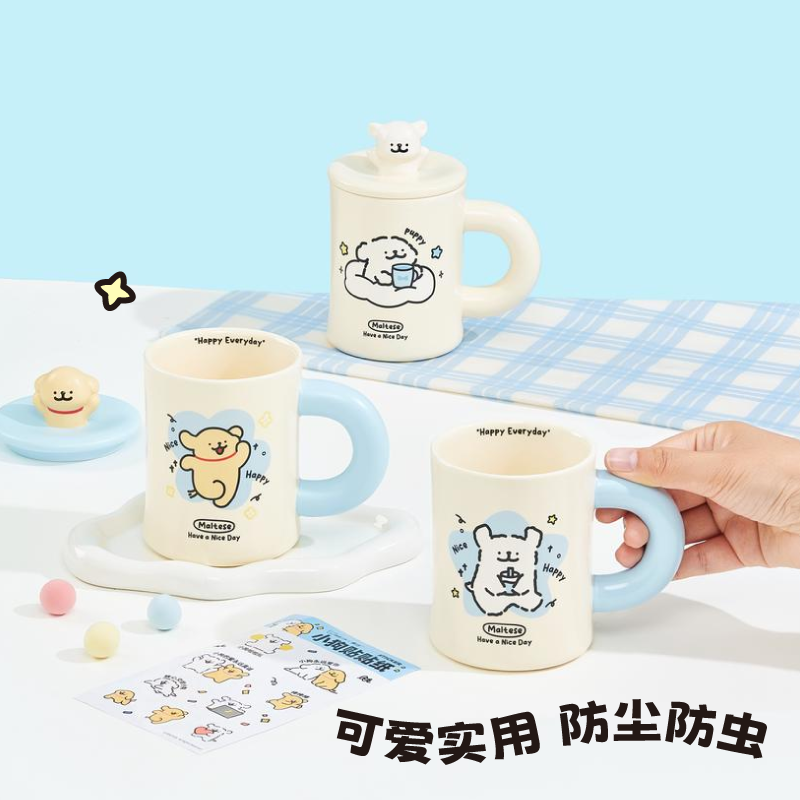 【马克杯配件专拍】线条小狗陶瓷杯盖立体实用水杯盖马克杯杯盖
