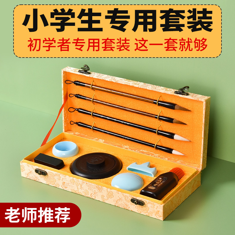 毛笔书法专用初学者套装入门初学儿童三年级练习毛笔字练字纸墨毛笔套装一整套学生写练字纸笔墨纸砚文房四宝