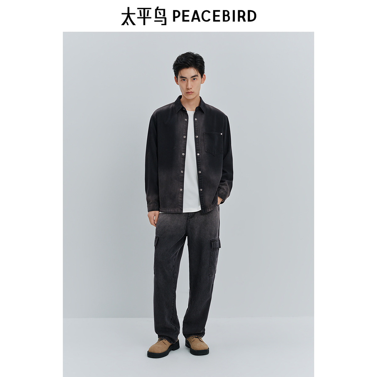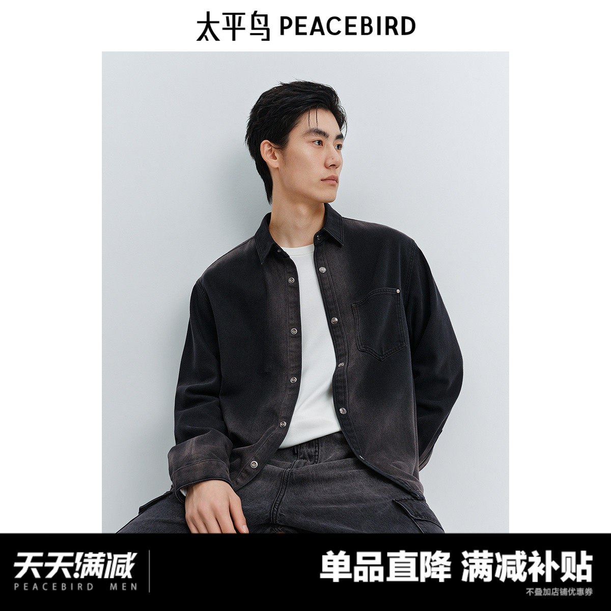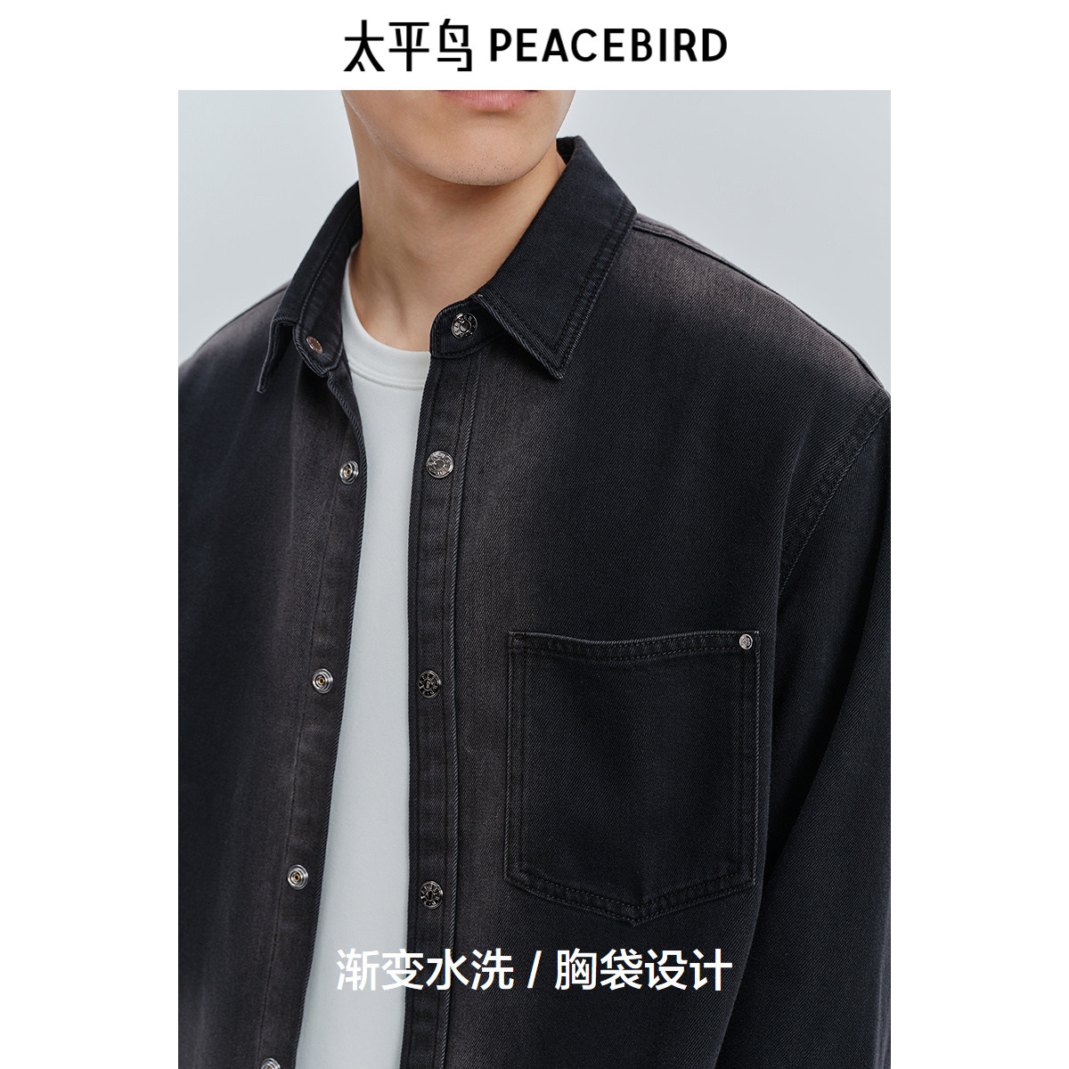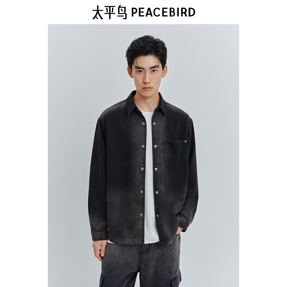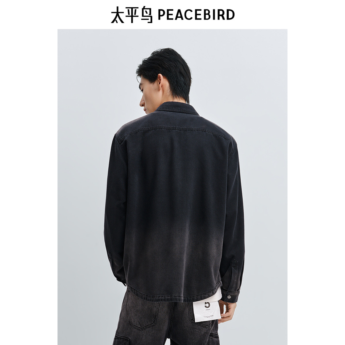 太平鸟男装 休闲衬衫2025春季新款牛仔衬衫水洗渐变休闲衬衫外套