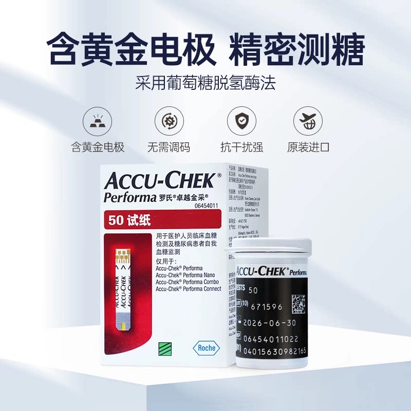 罗氏卓越金采型血糖试纸原装德国进口孕妇家用高精度血糖测试仪器