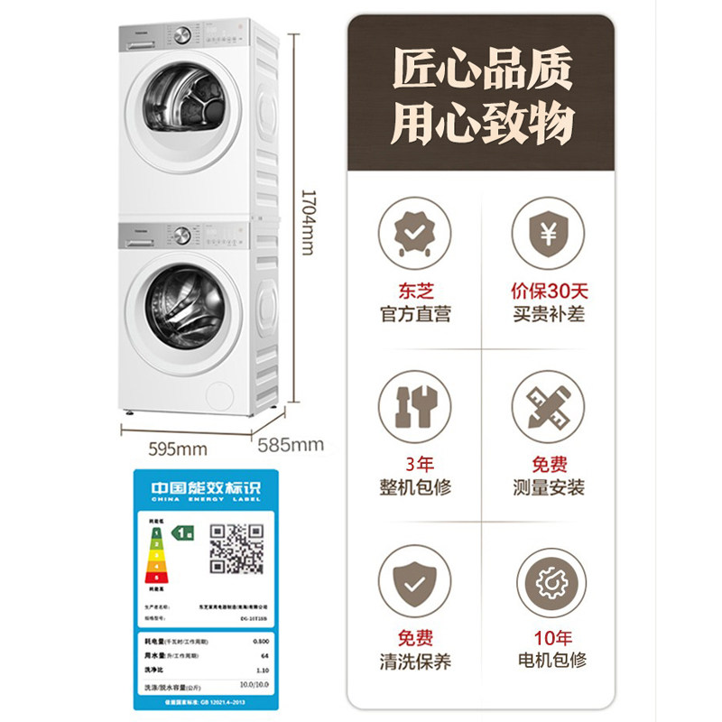[全民补贴]东芝10KG大容量玉兔2.0PRO洗烘套装滚筒洗衣机烘干机