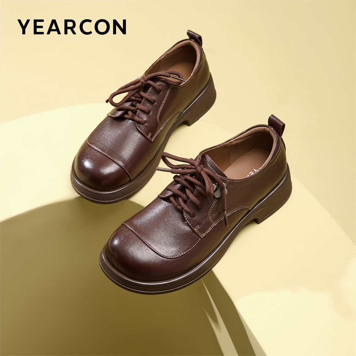 意尔康女鞋2025秋季羊皮单鞋英伦风小皮鞋深口乐福鞋通勤工作鞋