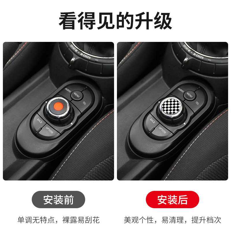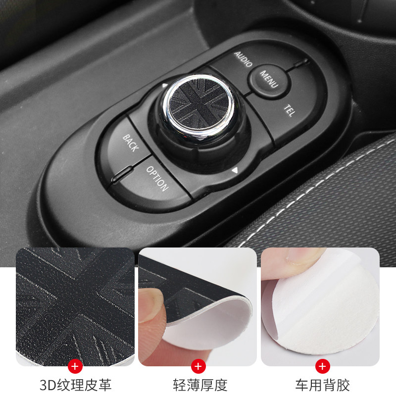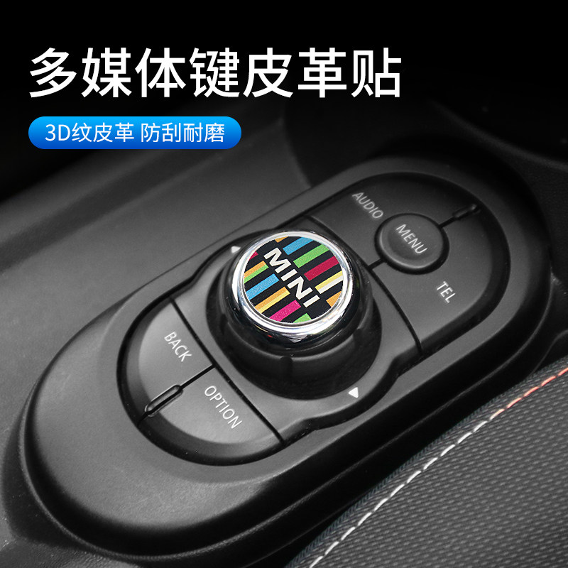 适用宝马迷你车内饰mini多媒体按键贴纸F56F55音量旋钮皮革装饰贴