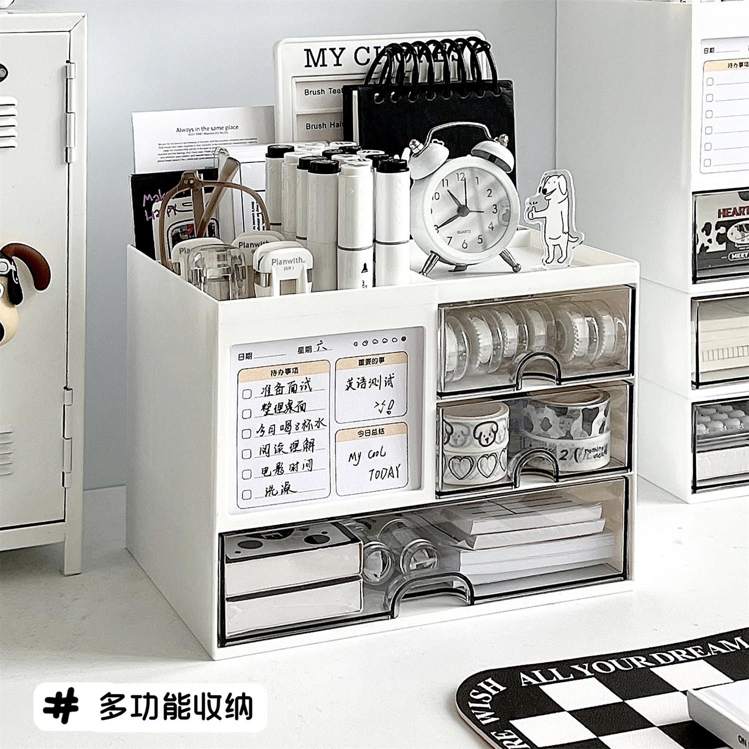桌面收纳盒抽屉式学生笔筒办公室工位置物架儿童书桌文具整理盒柜