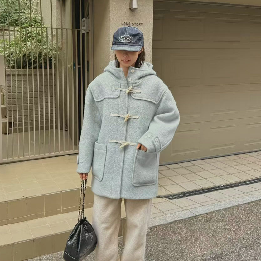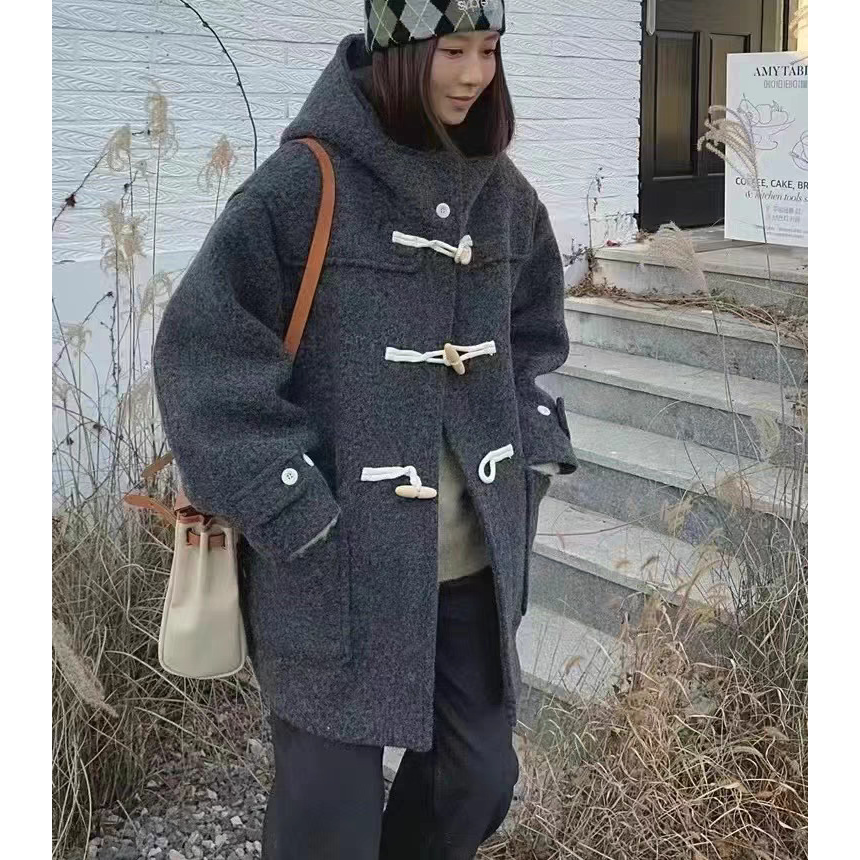 陆续!the ab*e牛角扣羊毛大衣韩国2025冬气质减龄纯色连帽外套女
