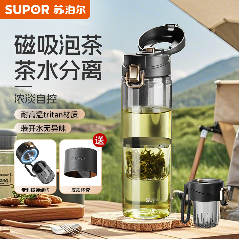 苏泊尔磁弹泡茶杯茶水分离大容量磁吸运动水杯子便携水壶男款夏季