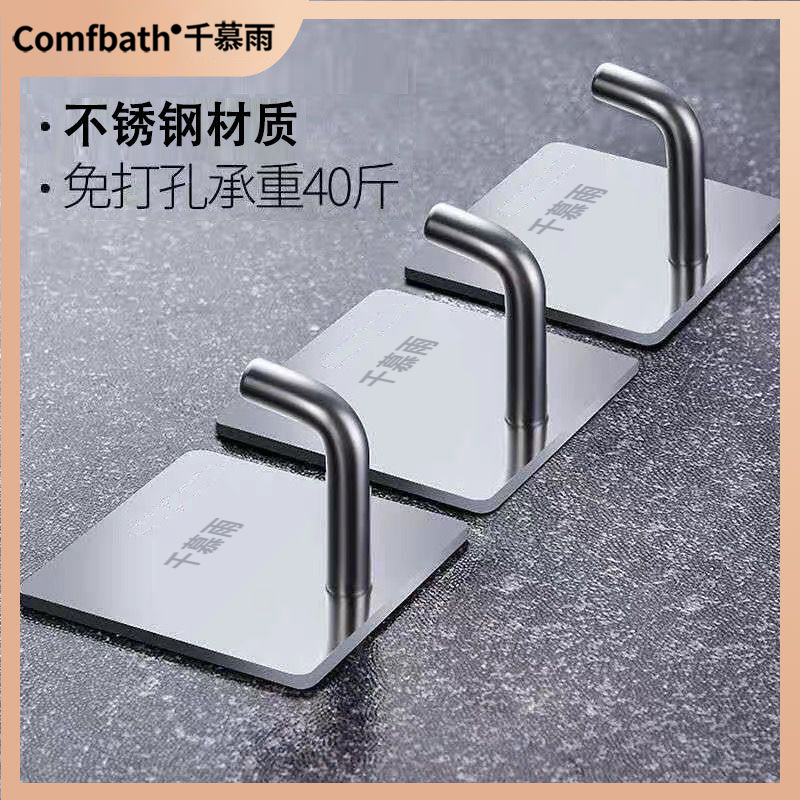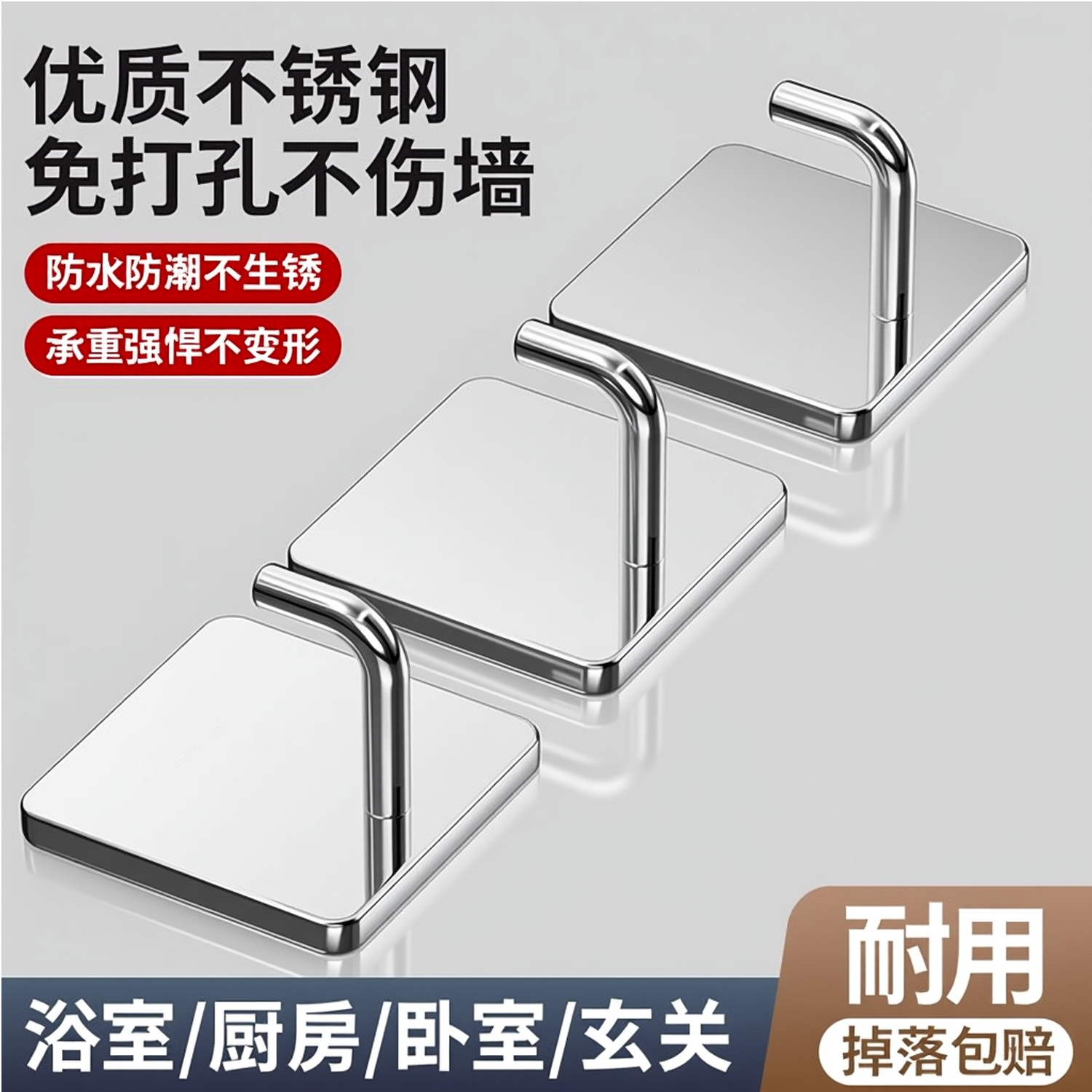 千慕雨不锈钢挂钩超强粘力特厚门后粘钩家居贴墙宿舍免打孔挂衣钩