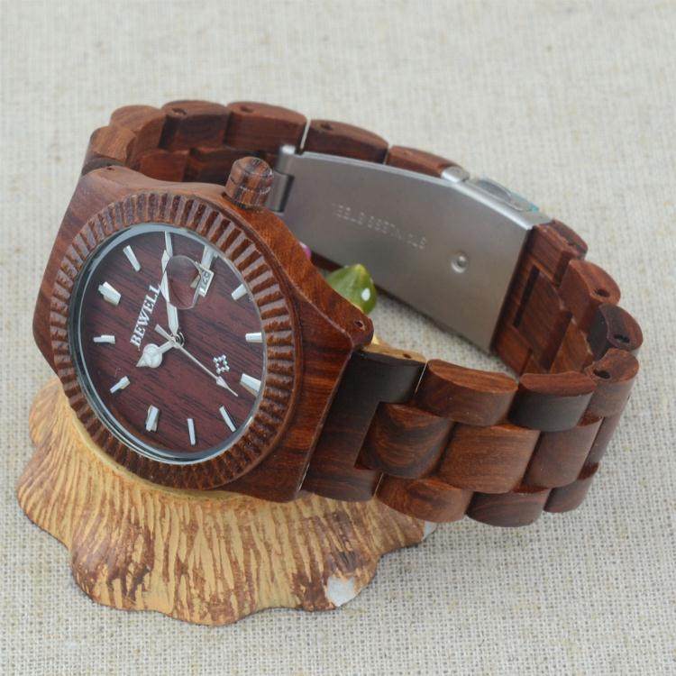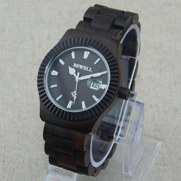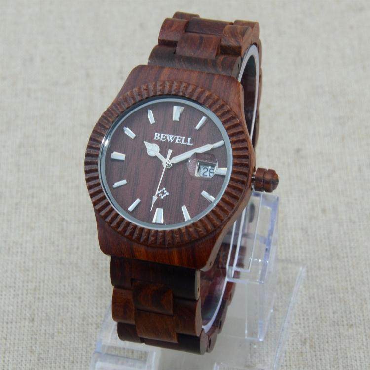 BEWELL贝威尔时尚休闲男士女士檀木手表天然进口檀木日历手表男女