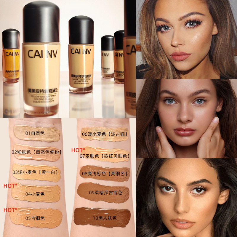 黄黑皮粉底液欧美小麦色美黑古铜色深色BB霜黑人深肤色持久不脱妆