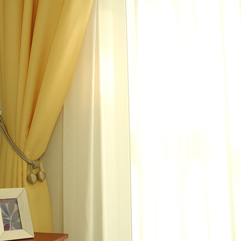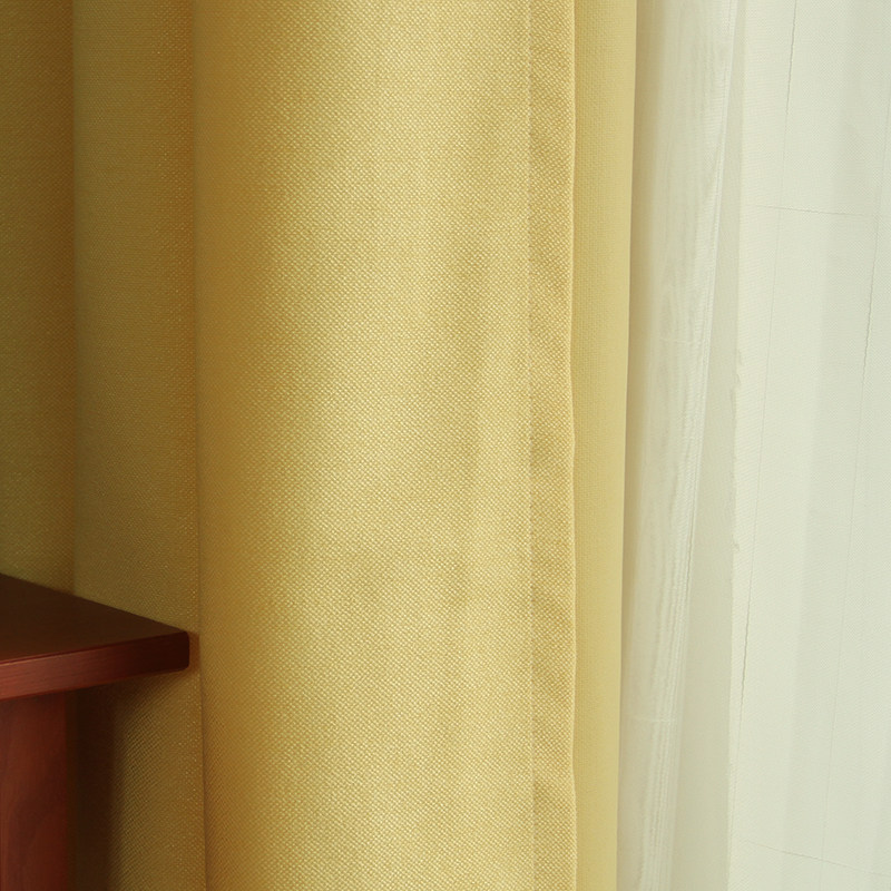 黄羽毛260高拼接 出口日式窗帘成品鹅黄色纯色简约固定褶皱送挂钩