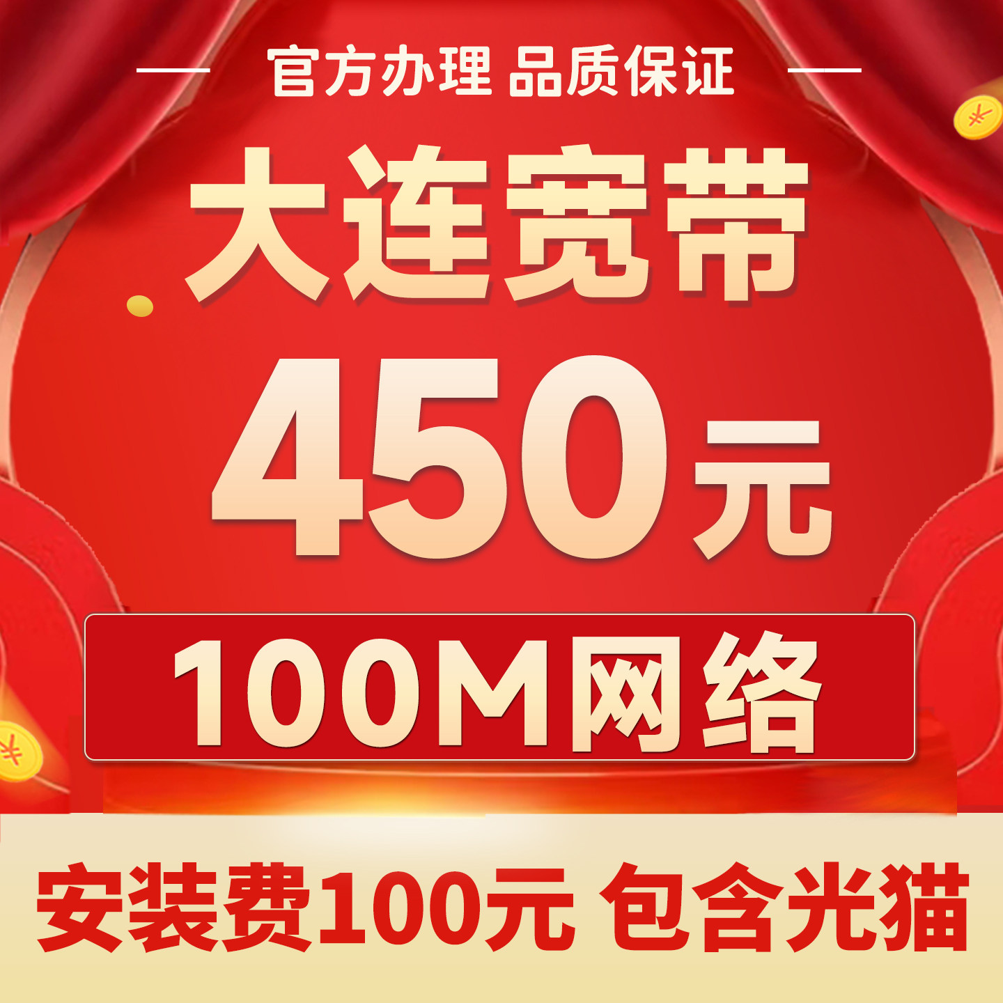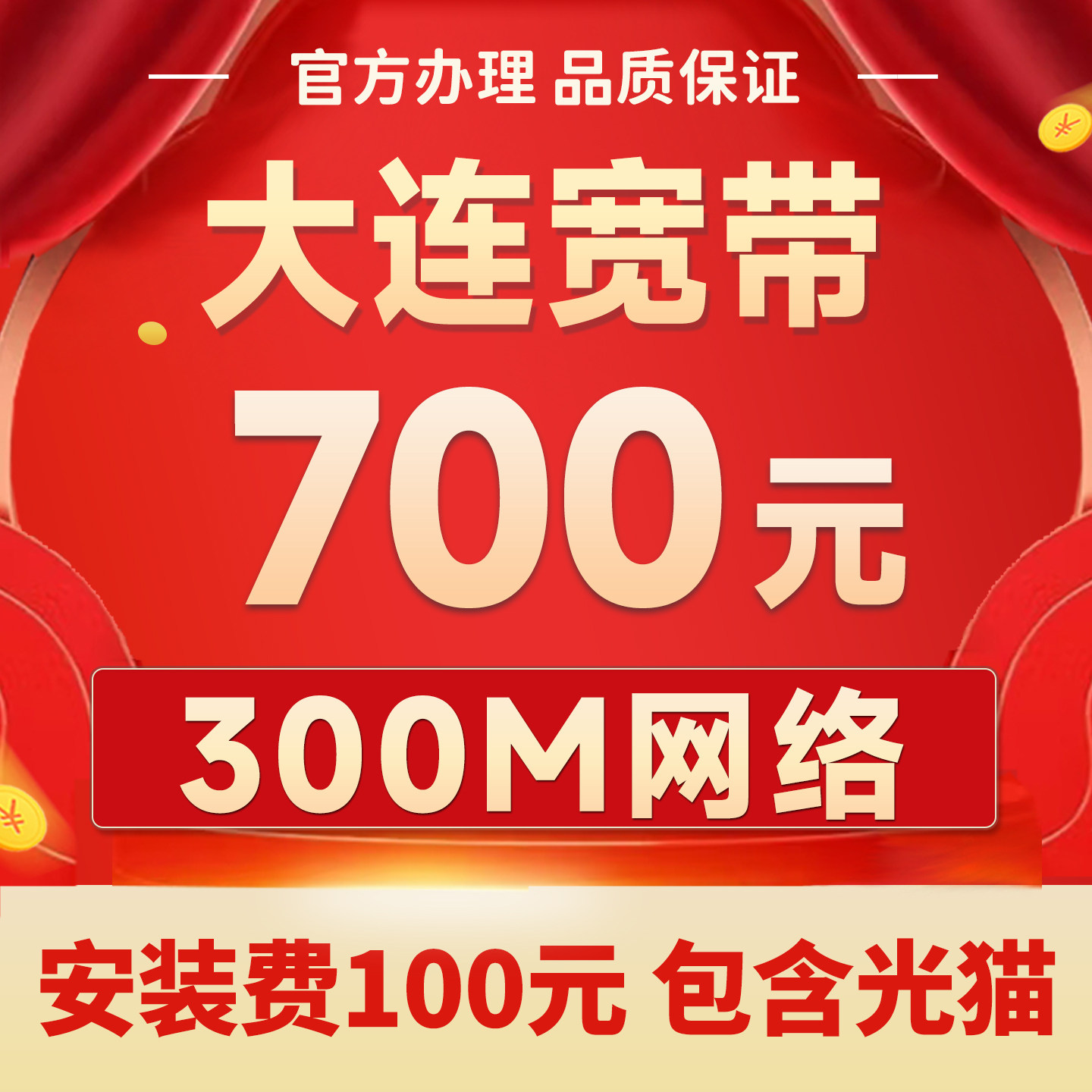 辽宁大连宽带办理联通网络光纤入户包年家用有线官方套餐100M300M