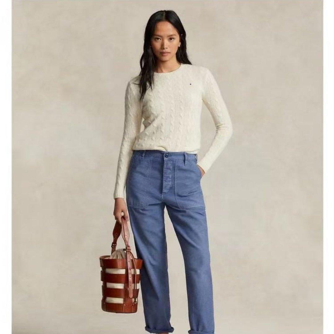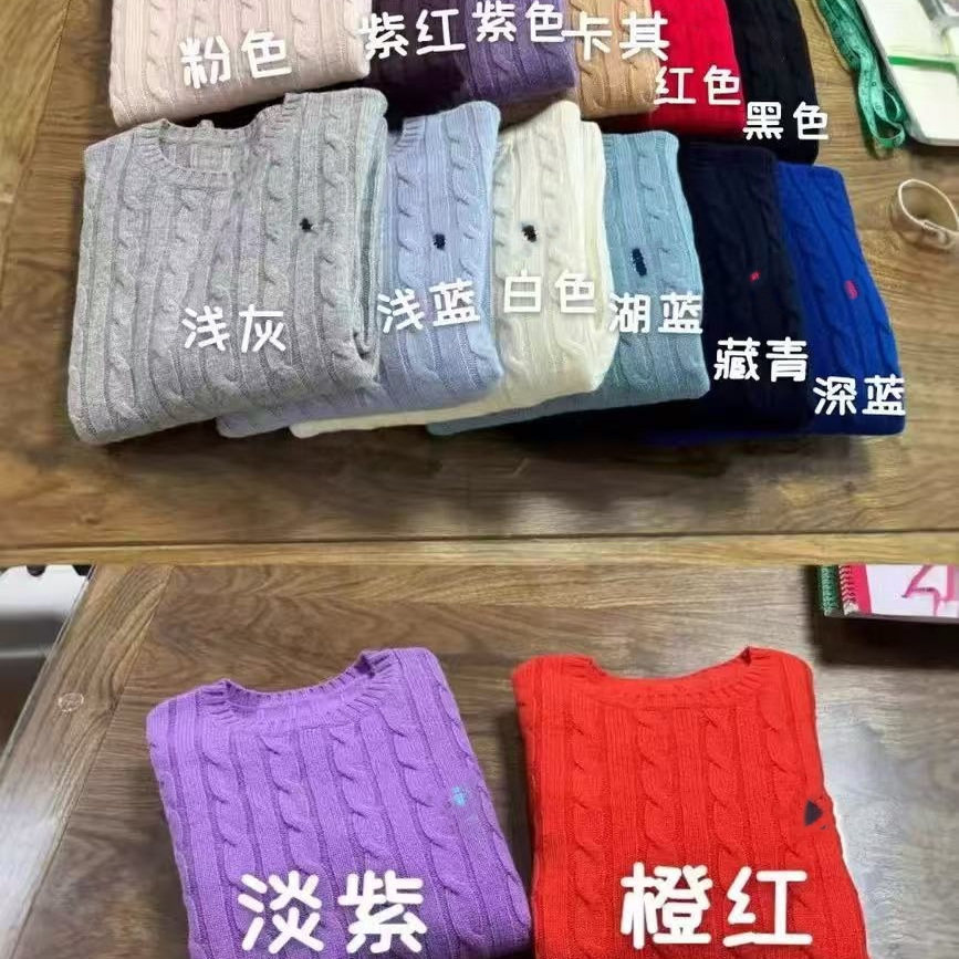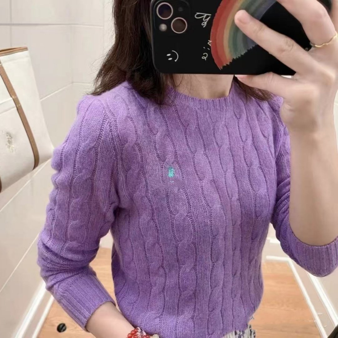 欧美外贸女装秋冬女士复古麻花圆领羊绒毛衣小马刺绣修身版针织衫