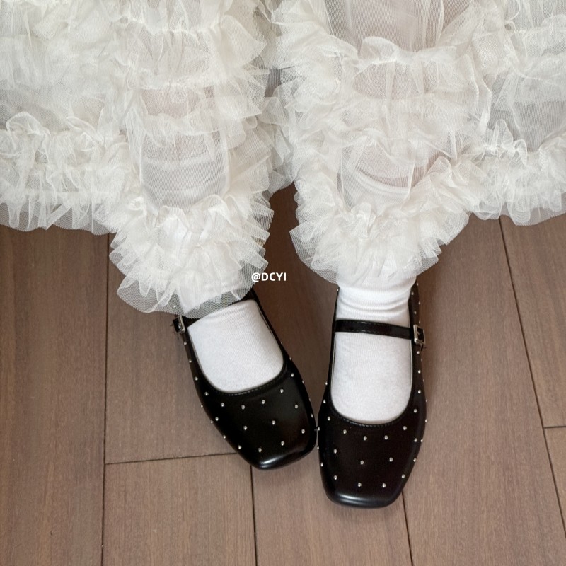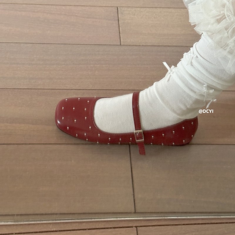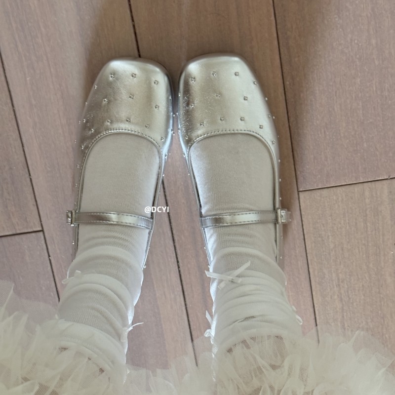 DCYI银色单鞋女一字扣配裙子玛丽珍平底鞋红色芭蕾舞鞋黑色小皮鞋