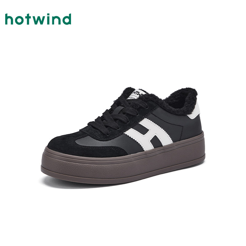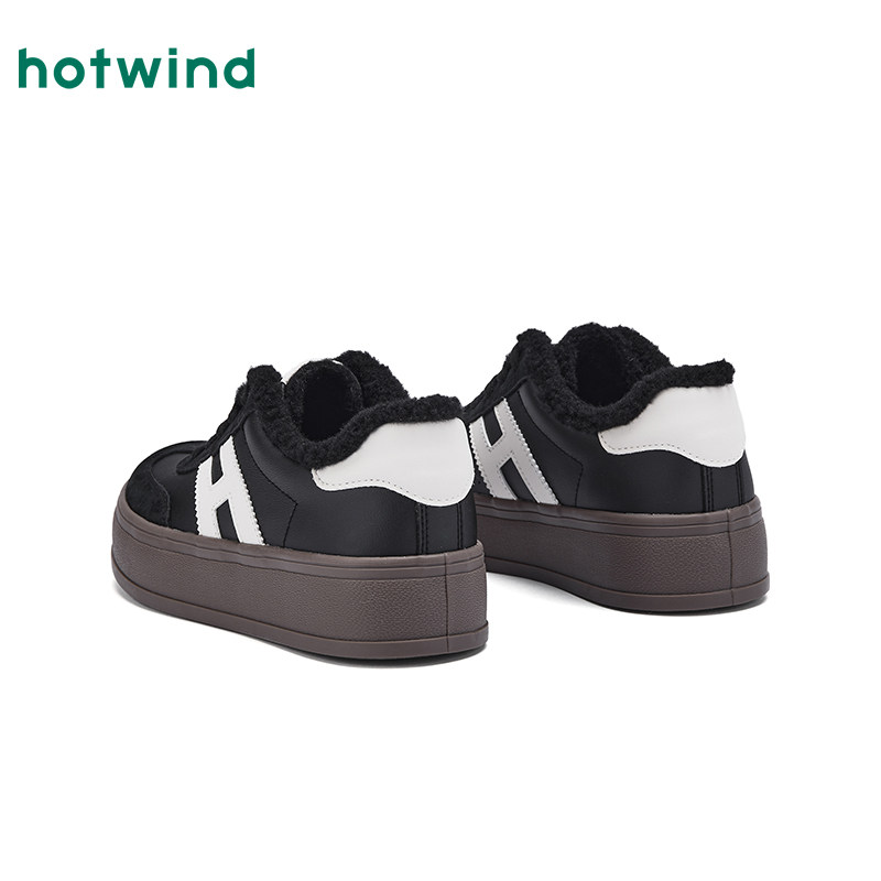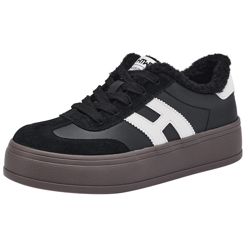 热风厚底德训鞋2025年冬季新款加绒棉鞋增高小白鞋红色休闲鞋女鞋