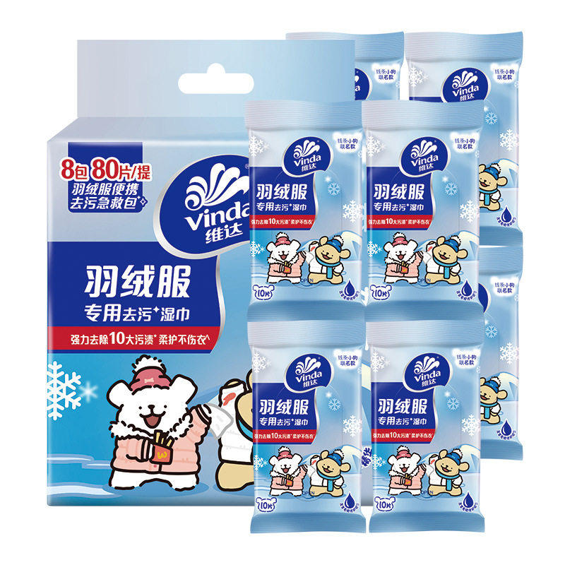 维达羽绒服清洁湿巾线条小狗联名免洗去污清洁衣物去渍湿巾纸