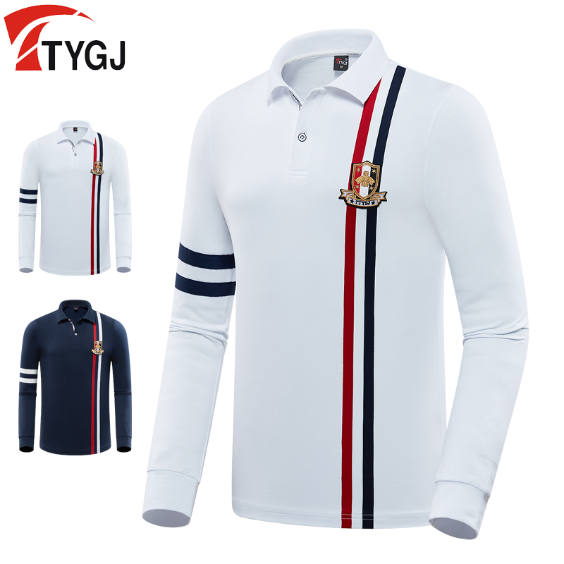 春秋高尔夫球服装 男士长袖T恤衣服 翻领POLO衫休闲运动 球队定制
