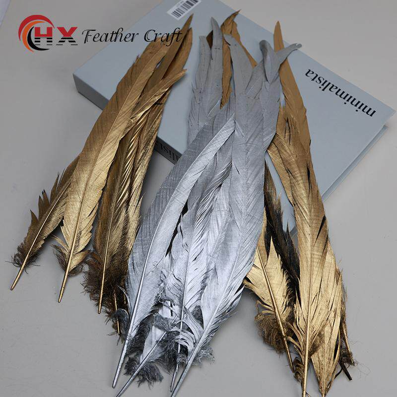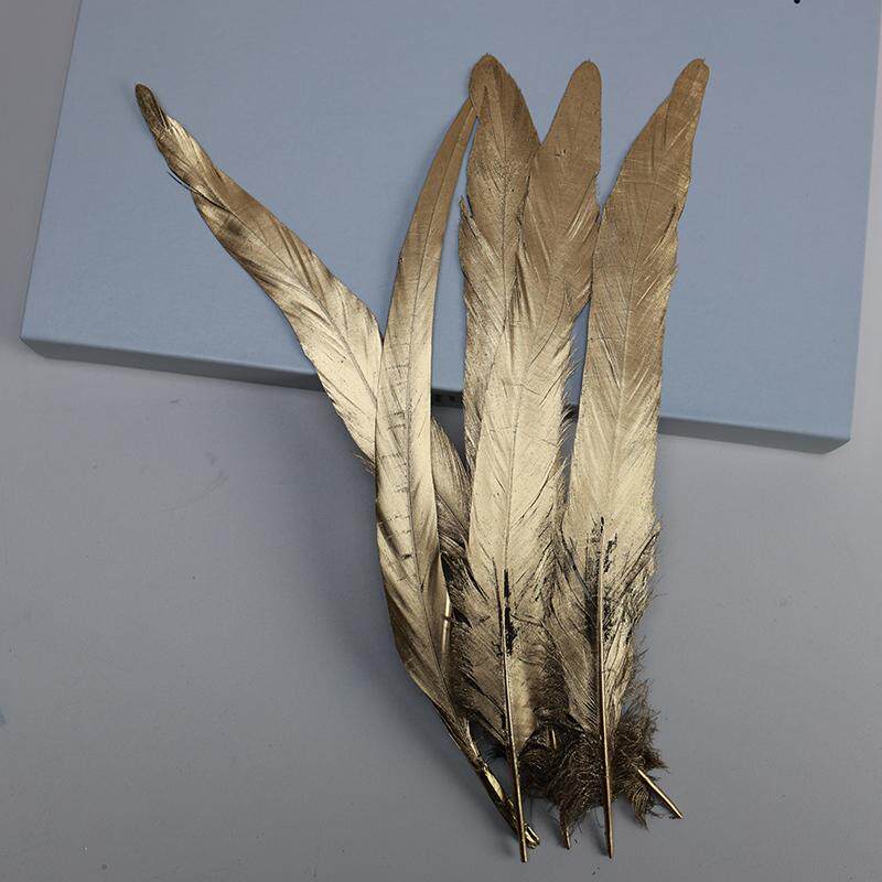 喷金喷银羽毛25-45cm天然鸡尾野鸡毛diy材料服装饰品配件金色羽毛