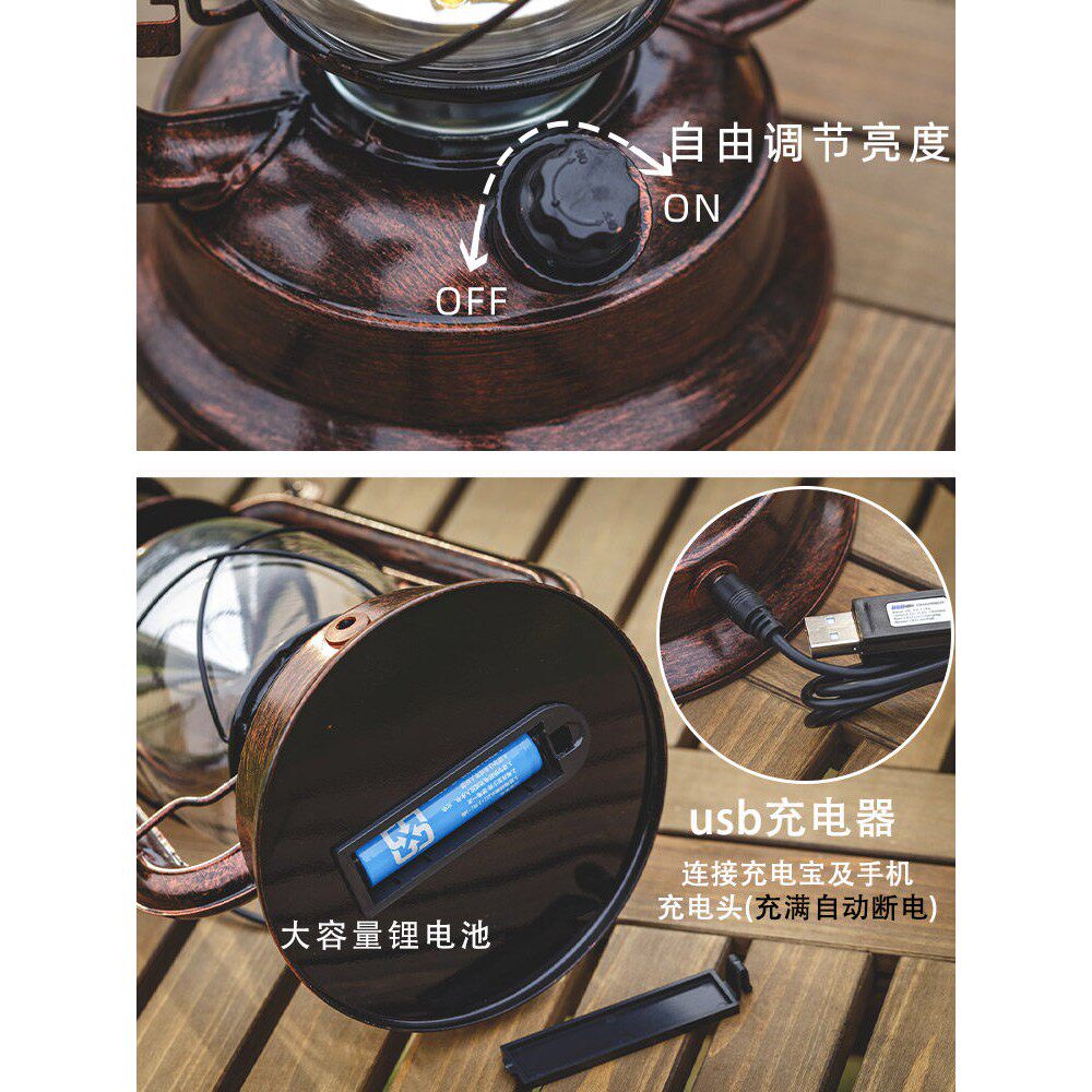 极古充电式太阳能马灯充电式煤油灯老式手提复古户外露营帐篷灯