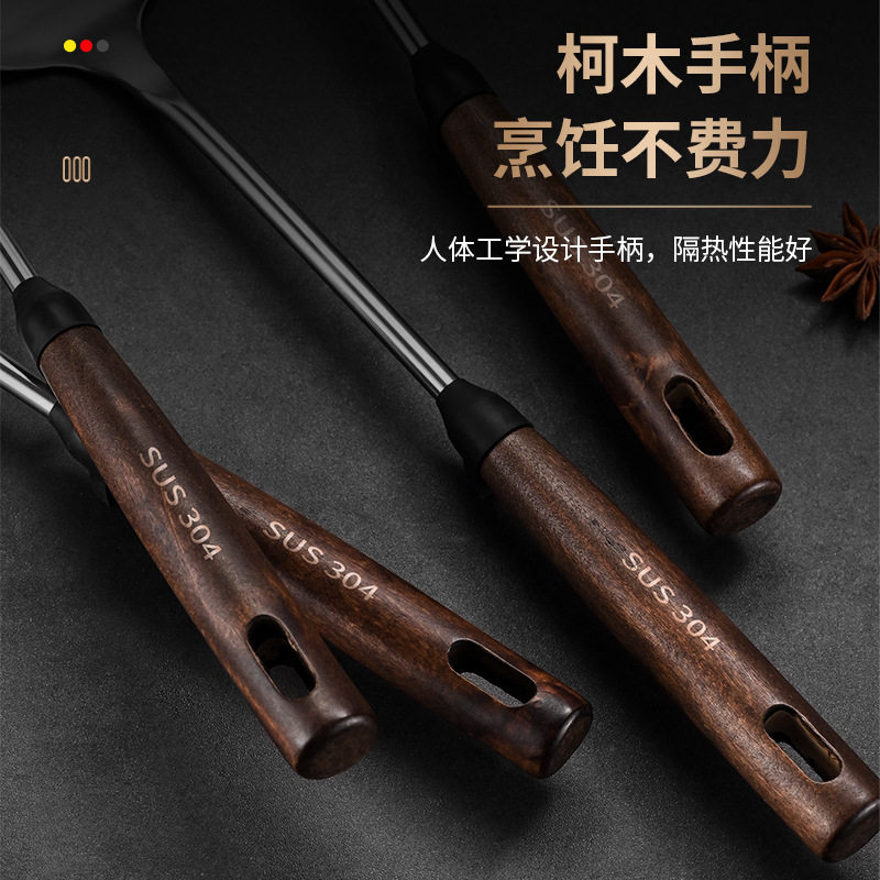 家用木柄煎铲汤勺漏勺锅铲子304不锈钢 定制防滑炒菜厨房烹饪用具