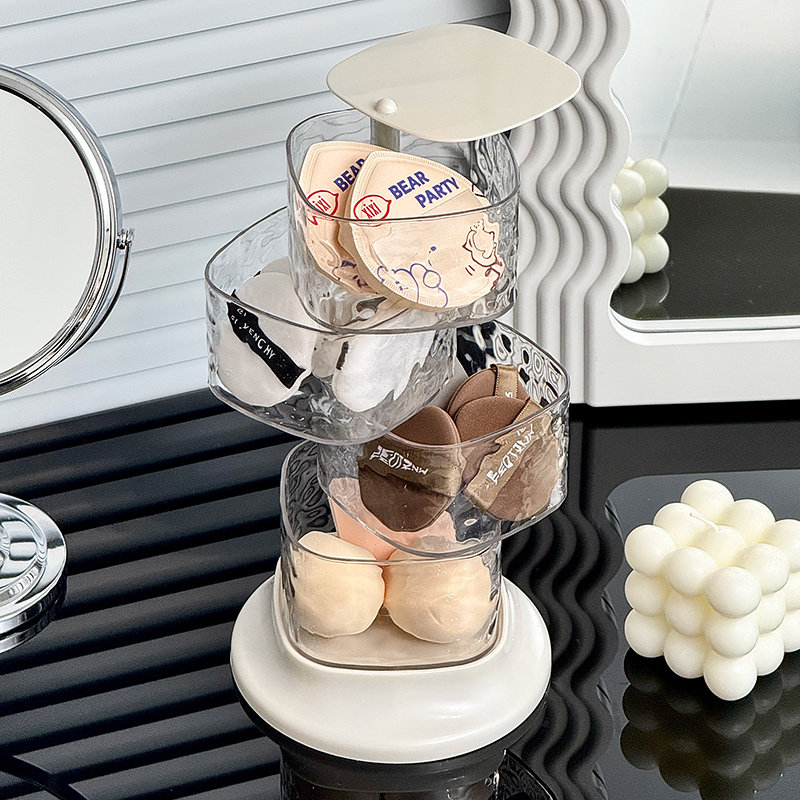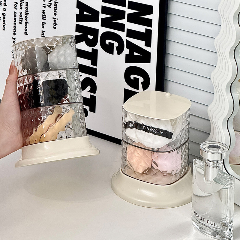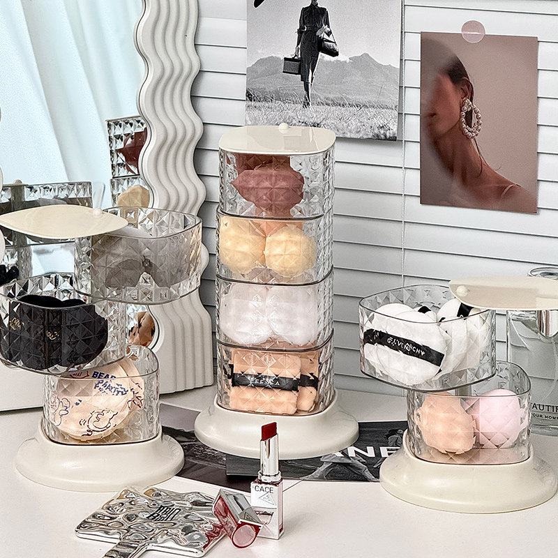 化妆粉扑专用收纳盒桌面防尘旋转美妆蛋多层透明化妆品整理置物架